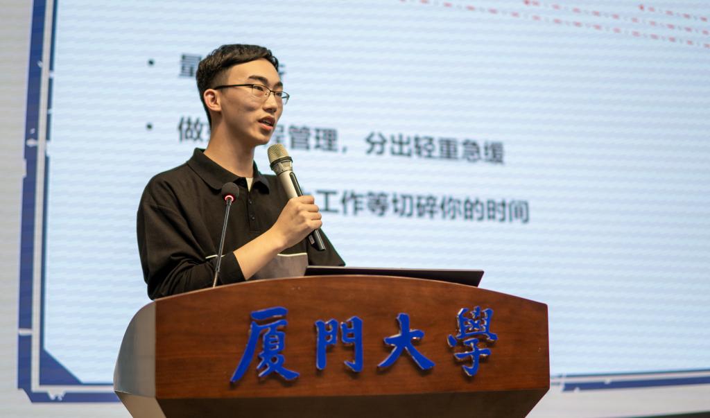 刘明辉同学的传奇故事许多同学都已有所耳闻。他有着严格的作息习惯,参与各项事务时节奏有条不紊,为我们身体力行地诠释了“自律使人自由”的优秀生活准则。从日常学习到考试复习,从学生工作到各类活动,刘明辉同学详细地讲述了大学生活中方方面面的经历与体验,也给我们分享了许多优质的学习经验。