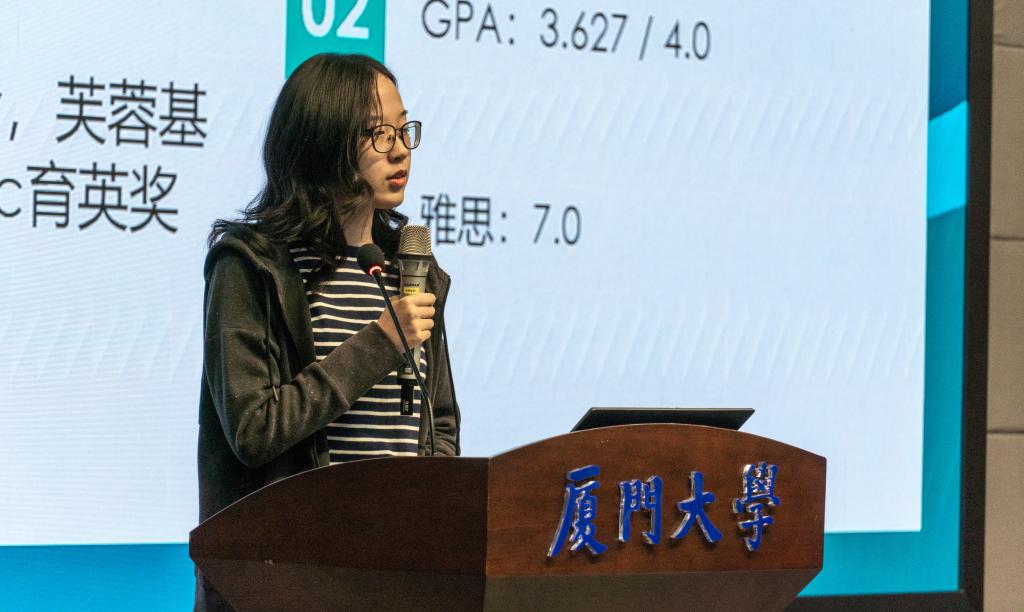 11月30日下午,信息学院“刻苦研学,学有所得”优秀学生经验分享会在翔安校区德旺图书馆二号报告厅举行,分享会邀请2017级信息与通信工程专业、保研宿舍代表游铭杭同学,2017级数字媒体技术专业、出国交流经验丰富的谢锶琦同学,2017级计算机科学与技术专业、跨专业保研的赵筱萱同学,2017级计算机科学与技术专业、保研清华的刘明辉同学四位信息学院优秀学子作为主讲人,分享学习生活中的宝贵经验。本次分享会由2020级本科生邓雪阳同学主持。