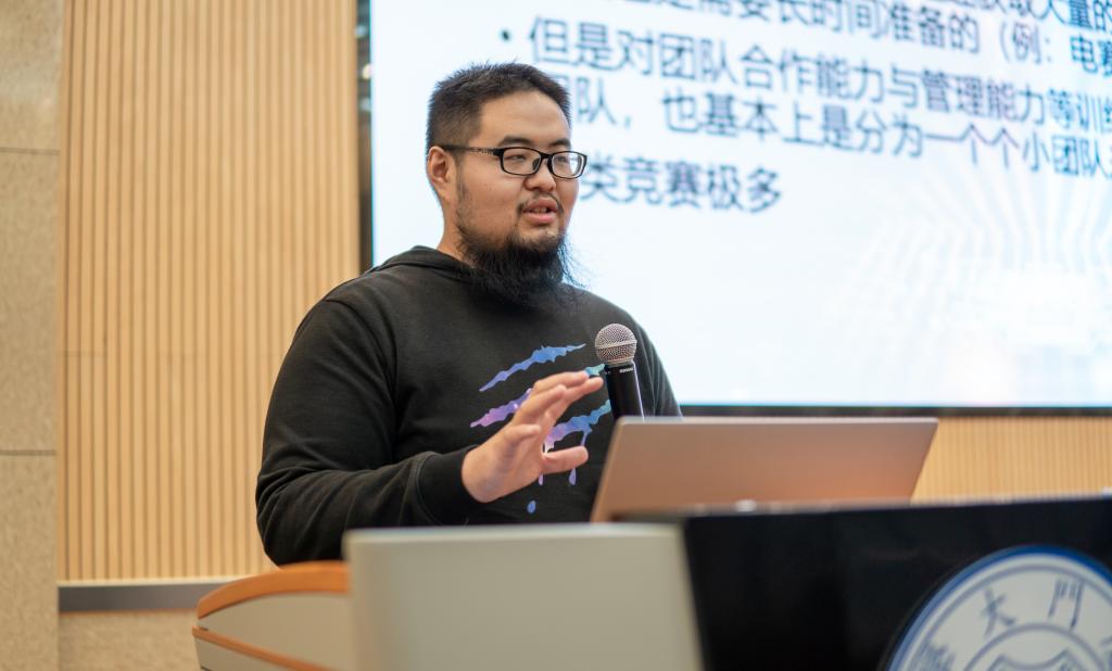 李远航同学详细的介绍了ACM(Association for Computing Machine,国际计算机学会)竞赛的相关情况,并且给予了同学们许多可贵的建议与分享。从开设零基础课程到手持金奖,一步一个脚印的坚持促使他带领团队走向成功。他用自己的经历告诉同学们,科创竞赛是一条不容易的道路,但只要同学们踏实勤奋、善于思考总结,一定能完成自己的竞赛目标。