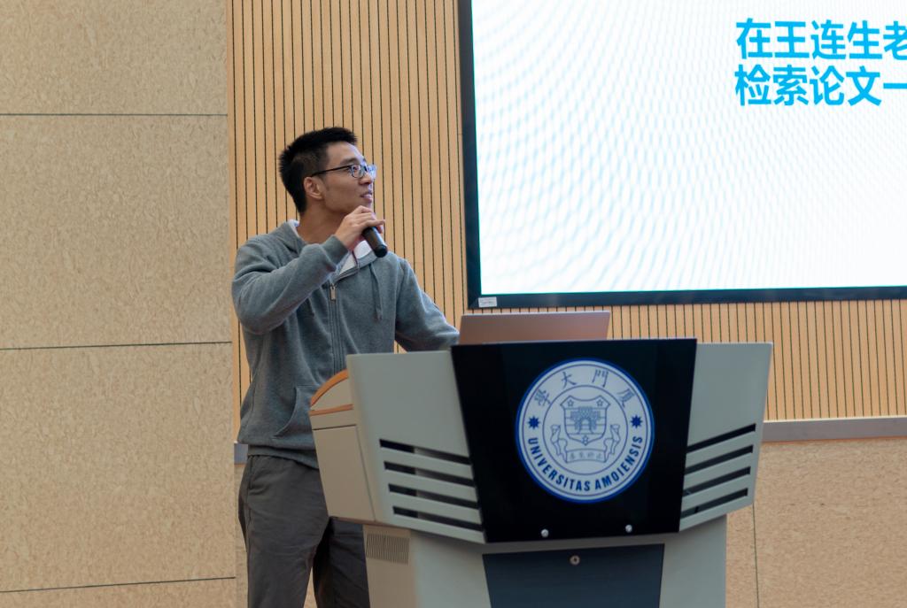 首先,王志源同学讲述了入门科研的大致方向,同时给参会同学许多有效的建议,他重点分享了在面对前辈们的经验时,同学们应该如何结合自身情况及时地调整自己,回到正确的航道,从而在学习和科研的道路上少走弯路,他认为这一点对于同学们来说尤为重要。
