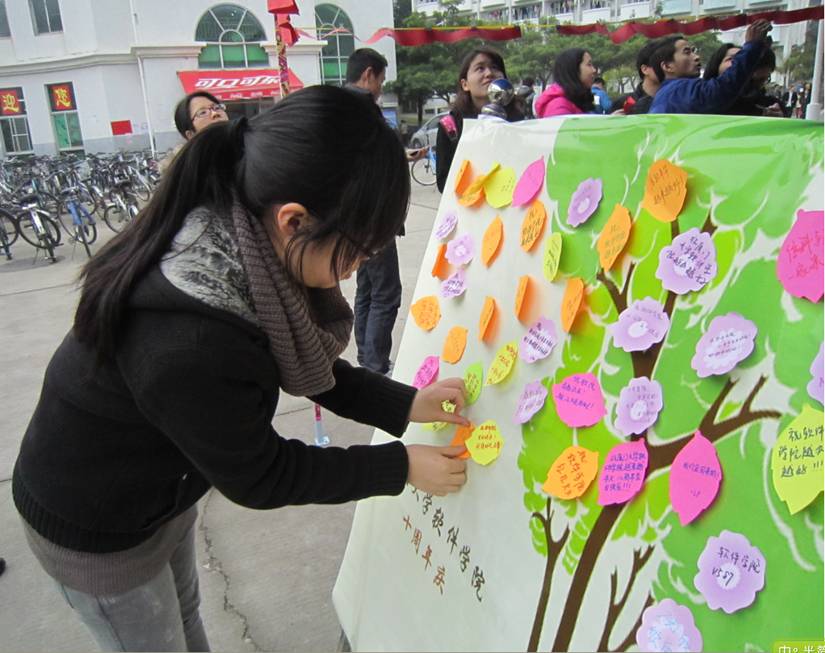 岁月花开花落,厦门大学国家示范性软件学院从创办至今已经走过了十个春秋。至此学院创办十周年之际,软件学院学生会、团总支于2012年3月11日在海韵公寓学生食堂一期门口和漳州校区步行广场同步开展了“庆祝软件学院建院10周年祝福语征集”活动。活动得到了全校广大同学的大力支持和广泛参与。