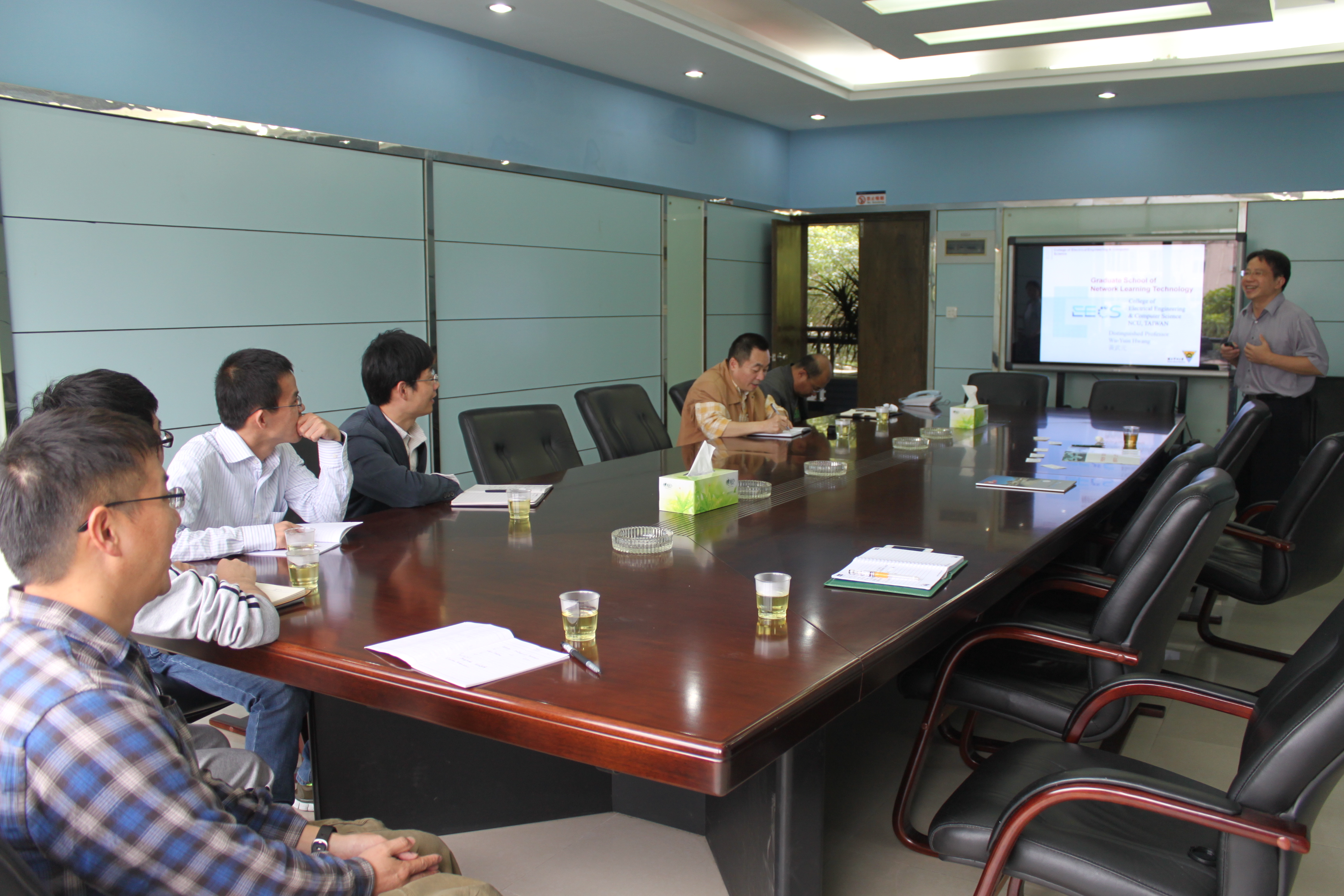 5月5日下午台湾中央大学网络学习科技研究所黄武元教授来访软件学院并与我院教师代表座谈。软件学院院长廖明宏教授,教师代表段鸿副教授,李贵林副教授,赖永炫副教授,林俊聪副教授,曾鸣助理教授参加了座谈。