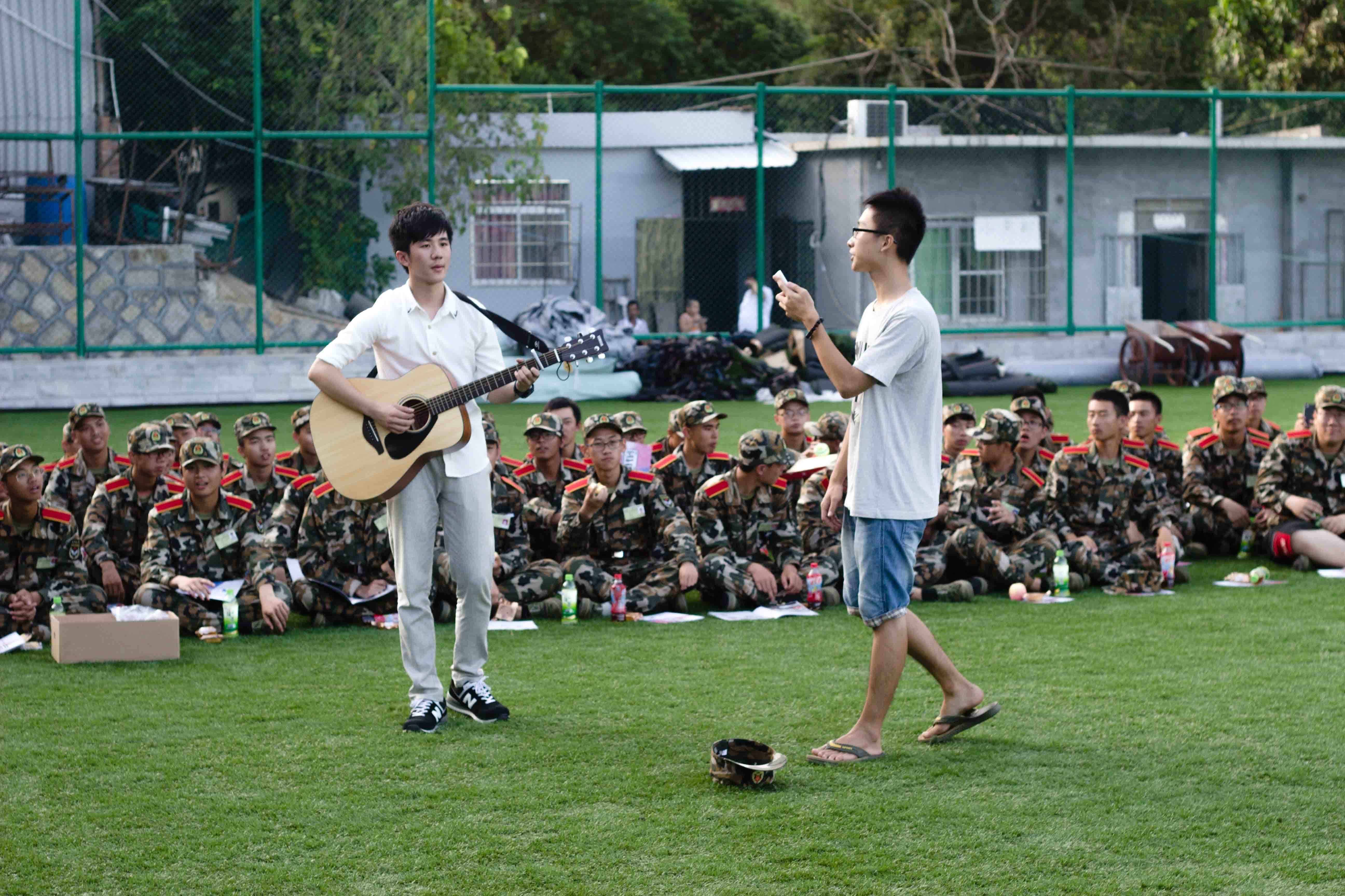 团总支学生会对软件学院的学生机构和学生活动进行了简单的介绍,同时向同学们发放了软件学院迎新特刊。担任各班助理辅导员的学长学姐们也借此机会,深入各班的同学们当中,近距离和同学们展开交流和慰问。两次慰问过程中,团总支学生会都为同学们精心准备了精彩的小节目,有吉他弹唱、舞蹈和小品等。军训的新生们也踊跃用自己的表演回馈前来慰问的老师和学长学姐们,他们通过独唱、合唱、跳舞等形式,展示了软件学院2014级本科新生积极向上、多才多艺的风貌,给现场的教官、老师和同学们留下了深刻印象。