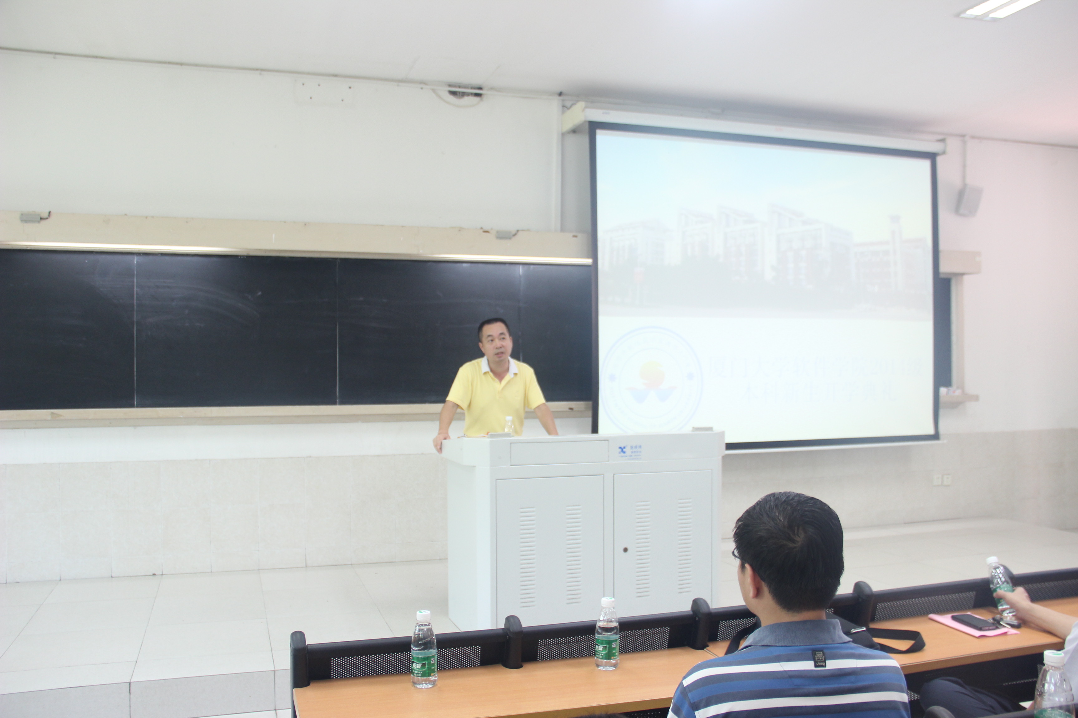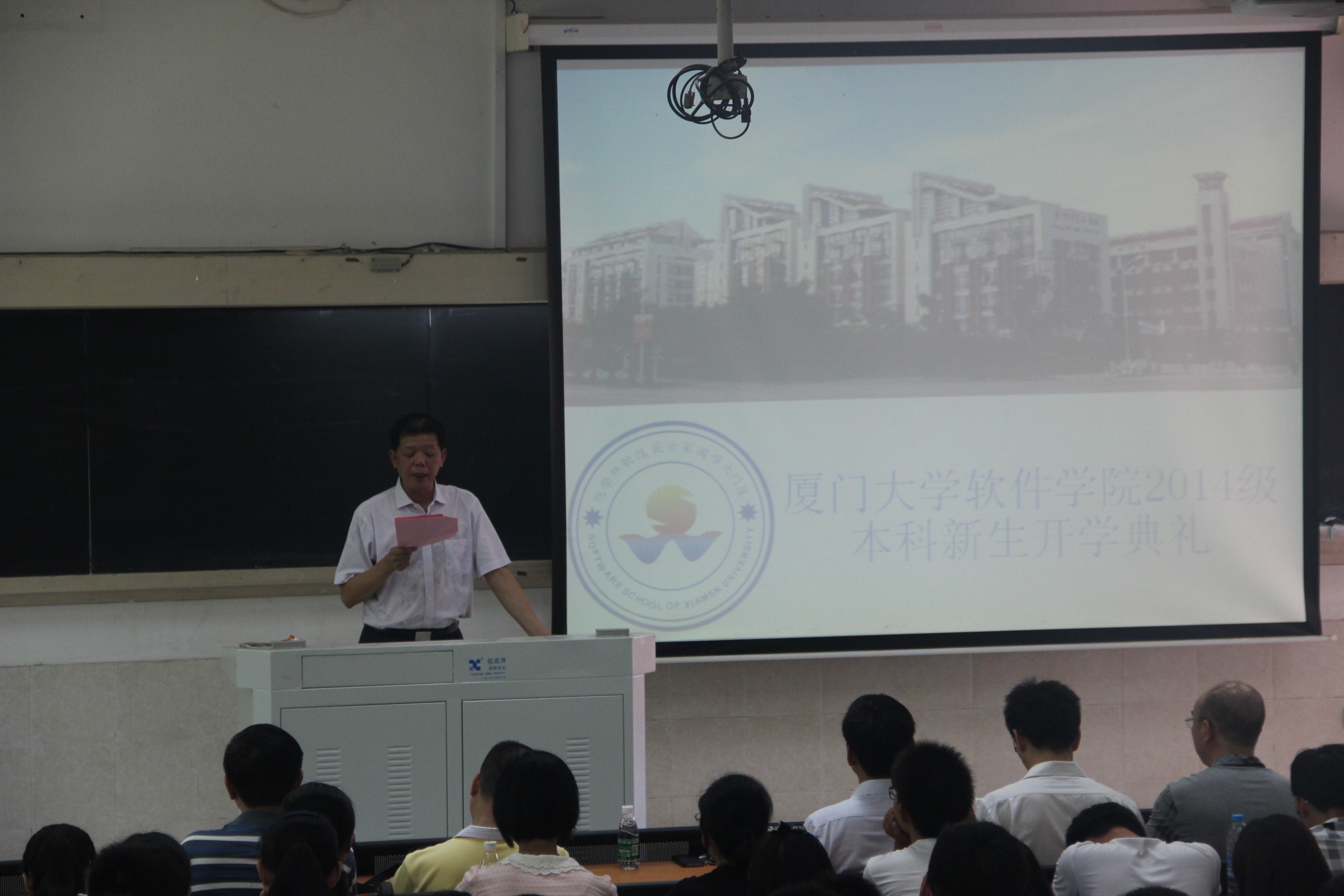2014年8月25日上午9点,软件学院2014级本科新生开学典礼在学生公寓教学楼201隆重举行。学院党委书记董槐林、院长廖明宏、副院长王备战、党委副书记刘钟南、史亮、数字媒体系主任姚俊峰、软件工程系副主任杨律青、班主任黄炜、曾鸣、辅导员葛学凤、李加冕、刘茜、教学秘书林伟强、黄娟娟出席典礼。典礼由刘钟南老师主持。