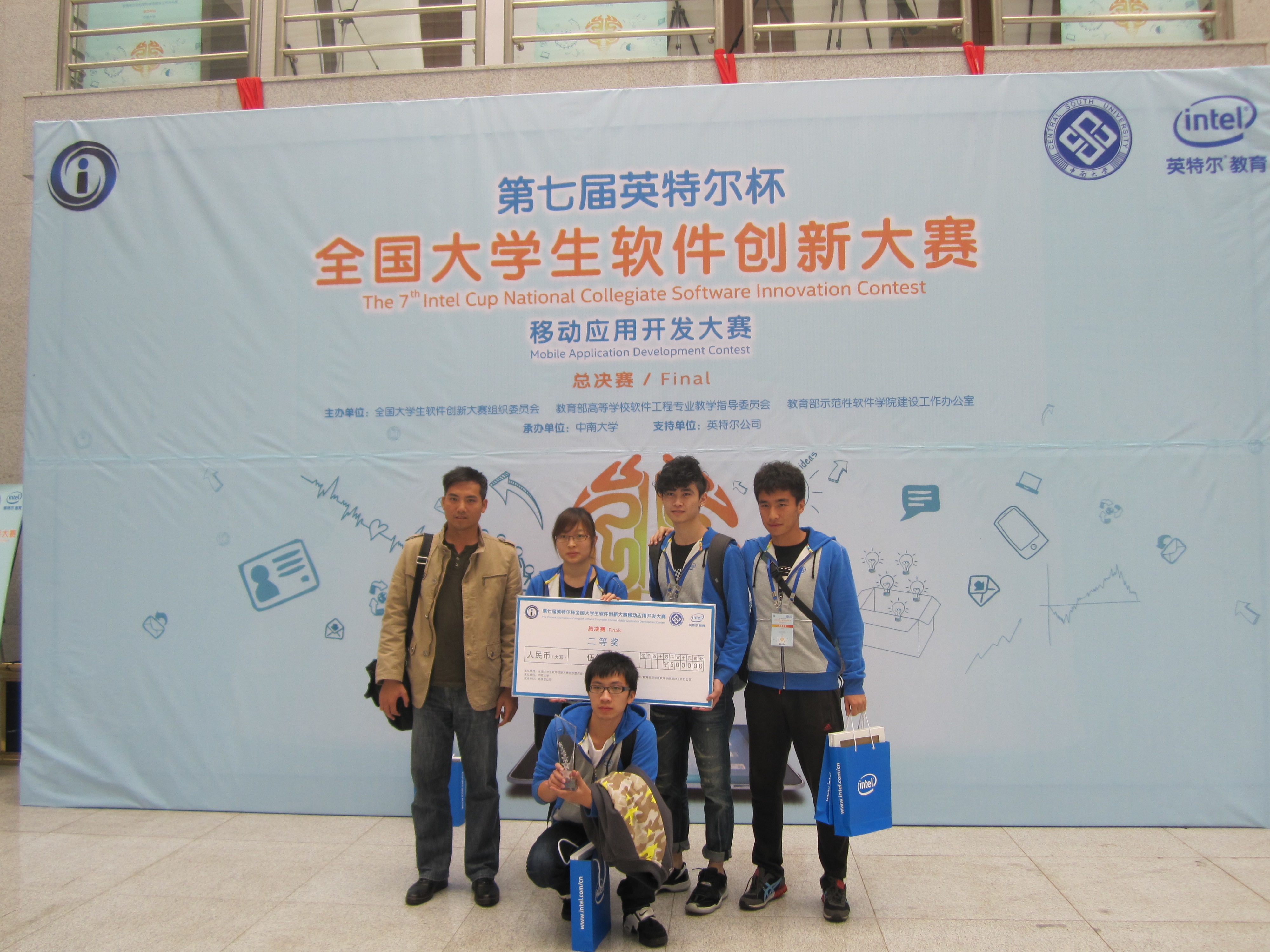 11月15日,由全国大学生软件创新大赛组织委员会、教育部高等学校软件工程专业教学指导委员会和教育部示范性软件学院建设工作办公室共同主办,英特尔公司支持,中南大学承办的第七届英特尔杯全国大学生软件创新大赛暨移动应用开发邀请赛在中南大学圆满落幕。我院院长廖明宏教授出席了颁奖典礼,并为获奖团队颁奖。