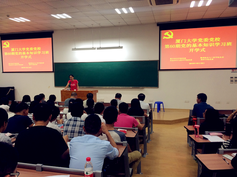 10月18日上午8:30,由数学科学学院党委、物理机电与工程学院党委、信息科学与技术学院党委、软件学院党委联合举办、由软件学院党委承办的“党委党校第60期党的基本知识学习班”开班典礼在海韵园物理机电航空大楼117报告厅隆重举行。软件学院党委董槐林书记、刘钟南副书记、数学科学学院党委郑诚明副书记、厦门大学特邀党建组织员陈道乾老师以及本期党校的各位带队老师和参训的162名入党积极分子参加了党校开班典礼。开班典礼由软件学院党委刘钟南副书记主持。