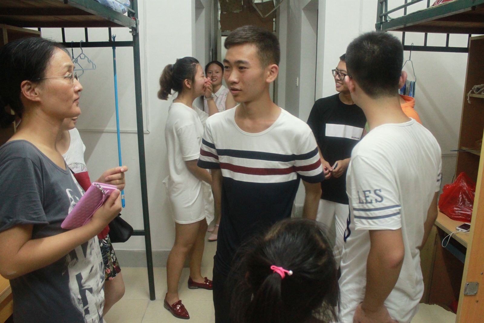 8月24日晚7点半,软件学院党委副书记刘钟南、2016级辅导员刘锦锗以及学院团总支、学生会主要干部走访本科生新生宿舍。