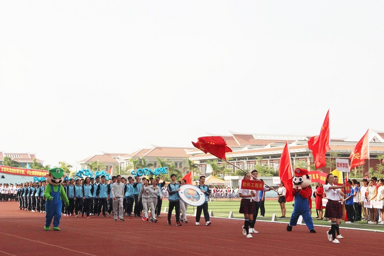 上午八时许,令人振奋的运动员进行曲奏响,入场式开始。29个学院和少数民族预科班各具特色的方队依次入场,尽显我校学子的青春本色与风华正茂。其中软件学院的同学们身着蓝色院服,齐声高喊软件学院“程序圆梦,代码筑城,软件巨龙,傲视群雄”的口号,展现了软件学子的风范,走在方阵前端的一红一绿两只马里奥为方阵增添了更多趣味。