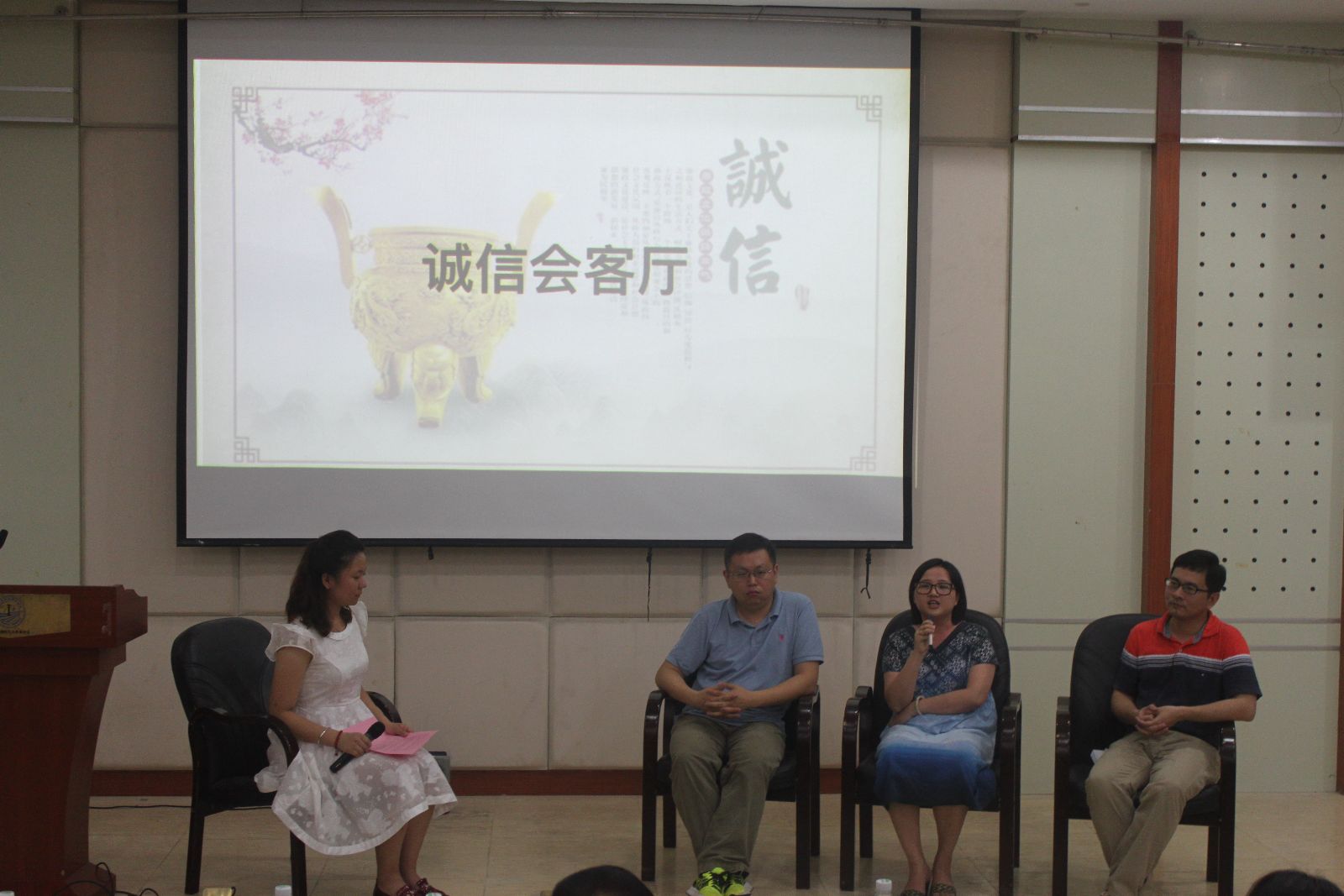 诚信会客厅环节,陈泗林、邱明和王晓黎三位老师分别从不同的角度分享了自己对诚信的理解。作为厦门大学学生处主抓学生教育管理工作的副处长,陈泗林老师结合案例详细解读了《厦门大学学生手册》中对考试违纪行为的规定和处罚管理办法,希望同学们遵守校规校级,展现诚信学品。邱明老师结合马来西亚校区任教的经历,从中马学生对比的角度向同学们强调了诚信的意义与不诚信的代价。王晓黎老师结合自身博士学习经历介绍了国外高校在学术诚信方面的做法,警戒同学们要严守诚信的底线。