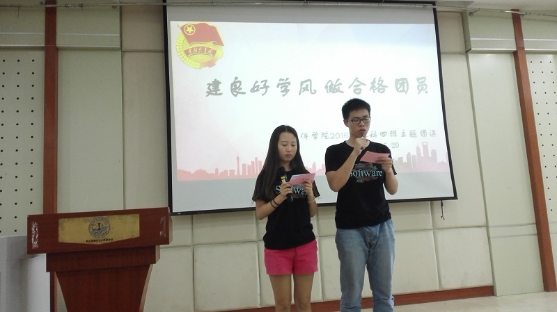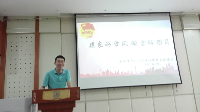 为扎实开展“一学一做”教育实践,帮助广大团员树立远大志向,在青年中发挥模范带头作用,做一名合格团员,软件学院2016级4班团支部于5月20日下午3点在海韵教学楼504教室开展了以“建设良好学风,做合格团员”为主题的团课观摩活动。软件学院党委书记董槐林,党委副书记刘钟南,数字媒体工程系教师代表曾鸣,团委书记葛学凤,团委副书记李加冕,辅导员刘锦锗,学院2013级本科生钟琦以及学院其他团支部团支委参与和观摩了此次活动。