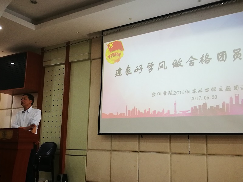 随后,软件学院党委书记董槐林对本次团课做了点评。他强调优良学风要在日常学习生活中一点一滴的建立,好的优良学风将对集体的每一个人产生深远的影响。优良的学风不仅可以让四班建设成优秀的班集体,更可以推而广之,让整个软件学院拥有良好的学习氛围。同时强调了学风建设是一项长期的工程,必须常抓不懈,并对软件学院全体师生提出殷切期盼,祝愿软件学院能在优秀学风建设中更上一层楼。