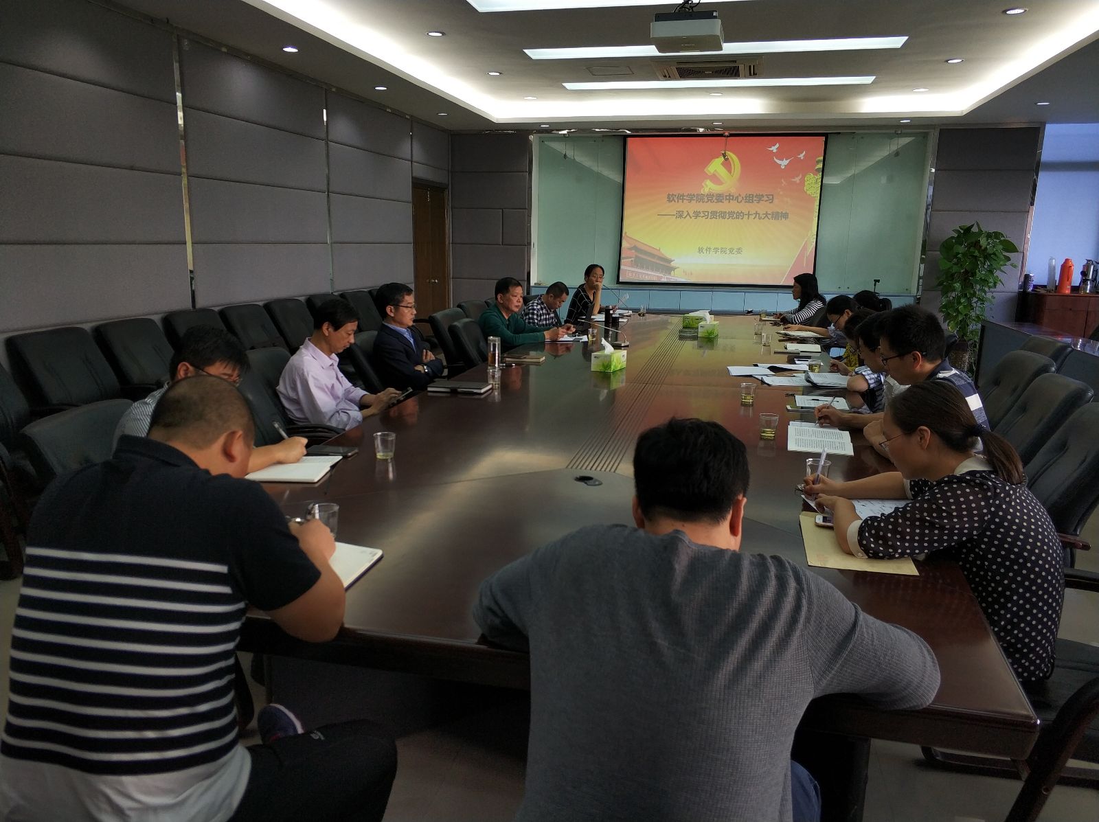 2017年11月16日上午,软件学院在行政楼A306会议室召开学院党委理论中心组学习扩大会议,深入学习贯彻党的十九大精神。学院党政班子成员、党委委员、系级领导、教工党支部书记、党务秘书和辅导员参加了此次会议。会议由学院党委副书记刘钟南同志主持。