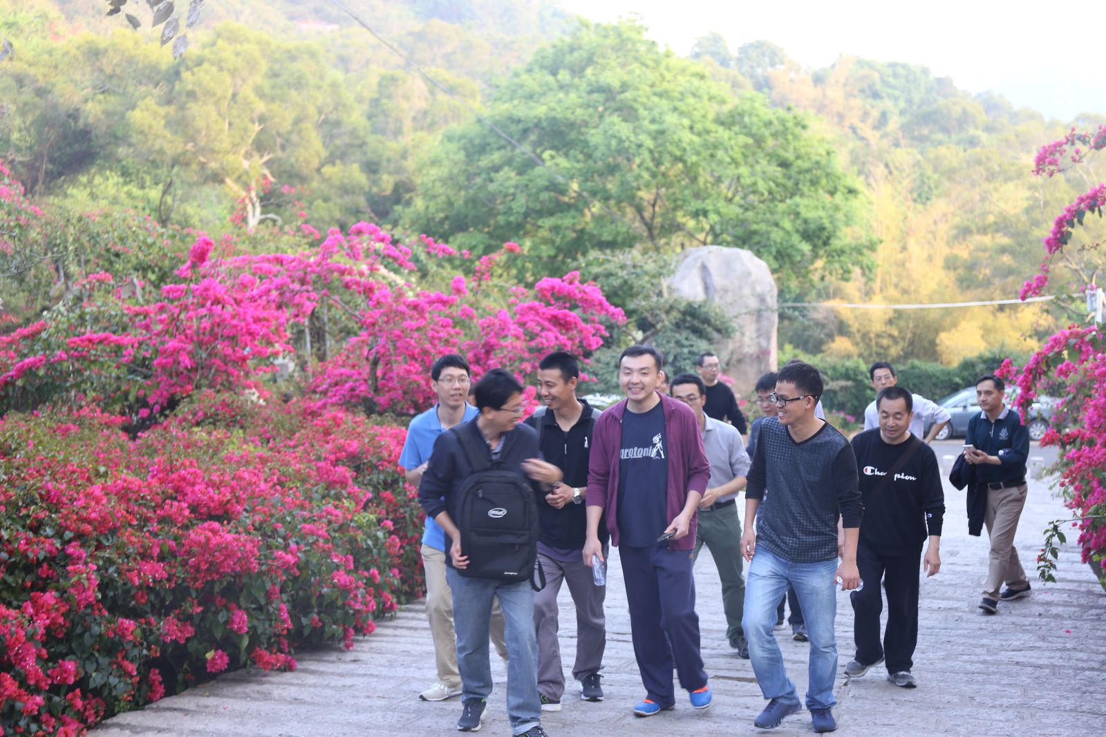 参加活动的教职工在学院门口集体合照后,三三两两的结伴而行,朝着“梅海岭”的方向前进。正值春天的东坪山,漫山开遍了瑰红鲜艳的厦门市市花三角梅,在灿烂的春光中催人珍惜时光,教人奋进。