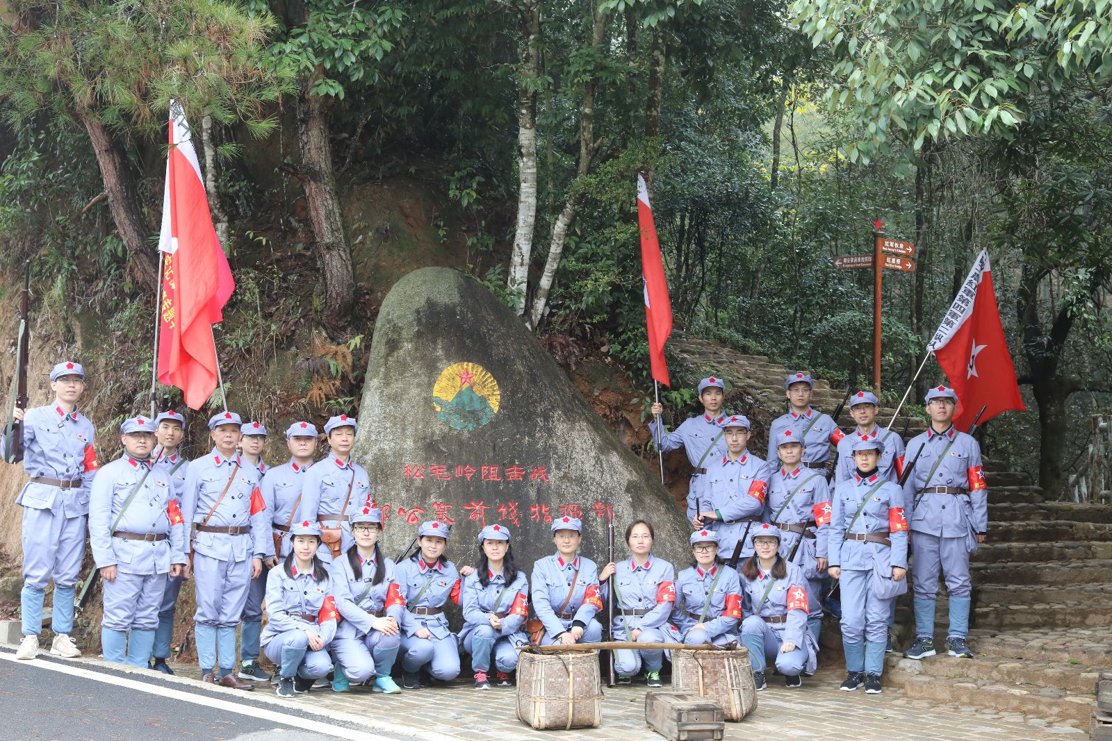12月2日上午,学习班举行了开班仪式,学院党委书记董槐林同志做动员讲话,要求全体学员集中精力参与本次学习,在学习中思考,在实践中感悟。开班仪式结束后,学习班全体成员头戴八角帽,身着红军服,背扛长步枪,集体前往连城松毛岭,重温长征前的悲壮史诗。松毛岭战役是长征前第五次反围剿红军在闽的最后一战,也是异常惨烈的一战。这一战,万余名无名红军战士身死松毛岭,为中央红军战略大转移赢得宝贵时间。在红军无名烈士墓前,学员们聆听了“青山处处埋忠骨,红军精神代代传”的点评教学,并向无名烈士脱帽鞠躬,表达对革命先烈的缅怀与敬仰。在瞻仰过中央苏区松毛岭战役纪念碑后,学员们重走红军路,从烈士墓前往郭公寨指挥所。在郭公寨指挥所,学员们见到了身穿红军服的红军后代黄润通老人。老人兄弟三人牢记父辈嘱托,一辈子坚守高地,看护红军英烈用生命和鲜血浸染的松毛岭的事迹感动了在场的每位学员。