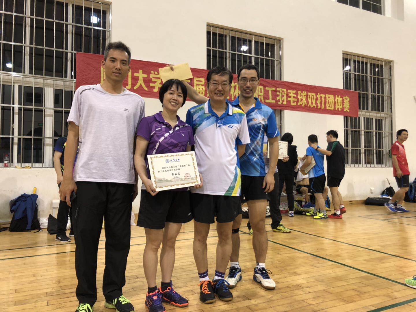 为贯彻落实《全民健身计划纲要》,丰富广大教职工业余文化体育生活,促进和谐校园建设,应广大羽毛球爱好者的要求,校工会于11月24日25日两天在思明校区三家村风雨球馆举办了第二届“嘉盟杯”教职工羽毛球双打团体赛,软件学院羽毛球队展现了良好的风貌和状态,最终获得第七名。
