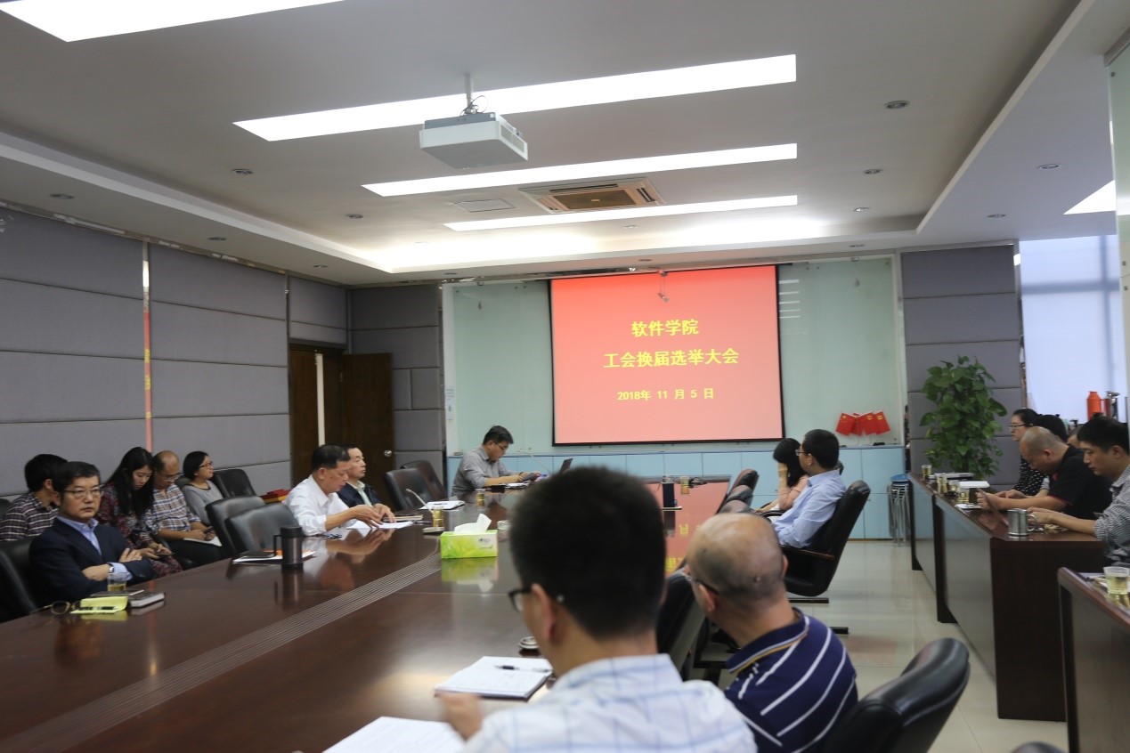 2018年11月5日下午5点,软件学院在行政楼A306会议室召开软件学院工会换届选举会员大会。学院全体工会会员参加了此次大会。会议由学院党委副书记、工会主席(代)史亮老师主持。