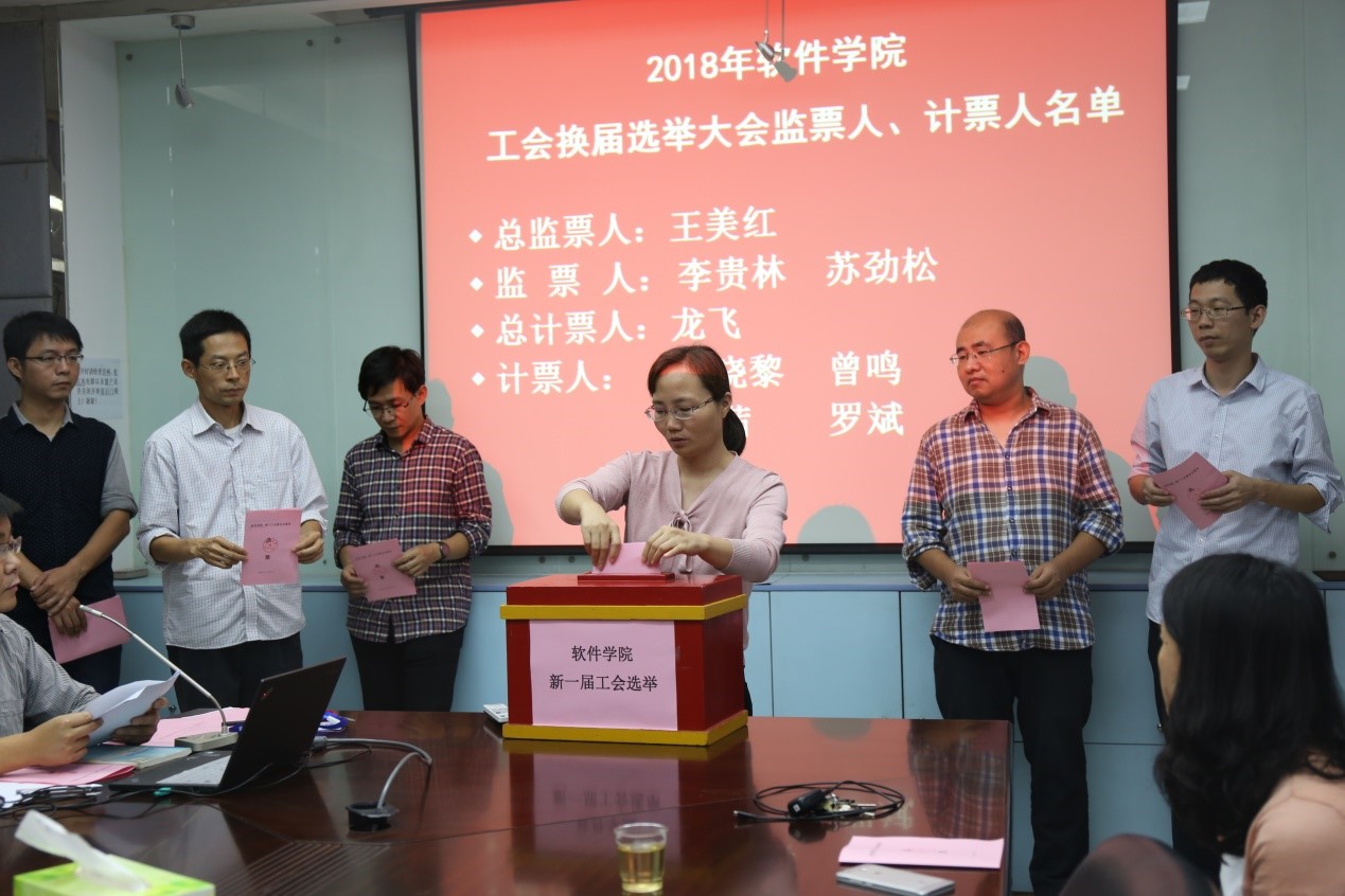 大会的主要议程是首先听取史亮老师代表上一届部门工会所作的2013年至2018年工会工作报告。其次,听取了邵志荣老师关于上一届部门工会经费收支情况的报告。紧接着,大会根据《工会基层组织选举工作条例》等有关规定,经到会会员的充分酝酿讨论,采取无记名投票方式和差额选举的办法,选举产生孙平等7位老师为软件学院新一届部门工会委员会委员,其中孙平当选软件学院新一届部门工会委员会主席。