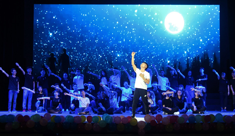第二个游戏互动环节的内容是“猜歌名”。13位同学分三组进行抢答,为了争得唯一的话筒使出浑身解数,引得大家不禁捧腹连连。之后研究生带来一首《你曾是少年》,动听的歌声引起了大家对往昔的深深思念,动听的歌声让人感受到青年的坚毅与力量;大二(2)班的合唱《一生有你》跟随幽暗灯光下摇动的荧光棒缓缓而起,歌声传递出陪伴一生的温暖,同学们的独舞、双人舞也艳惊四座。