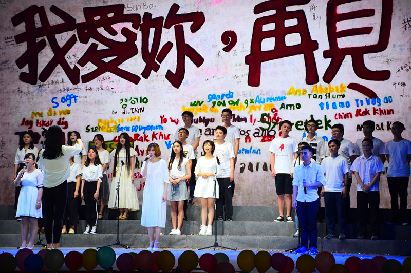 最后出场的是大四同学,热情奔放的舞蹈串烧,催人泪下的《凤凰花开的路口》,以及学长学姐对厦大的深情表白,唱出了对学校、老师和同学的不舍。观众们跟着湿了眼眶,既往不恋,未来不迎。同学们齐声喊着“学长学姐常回家看看”。