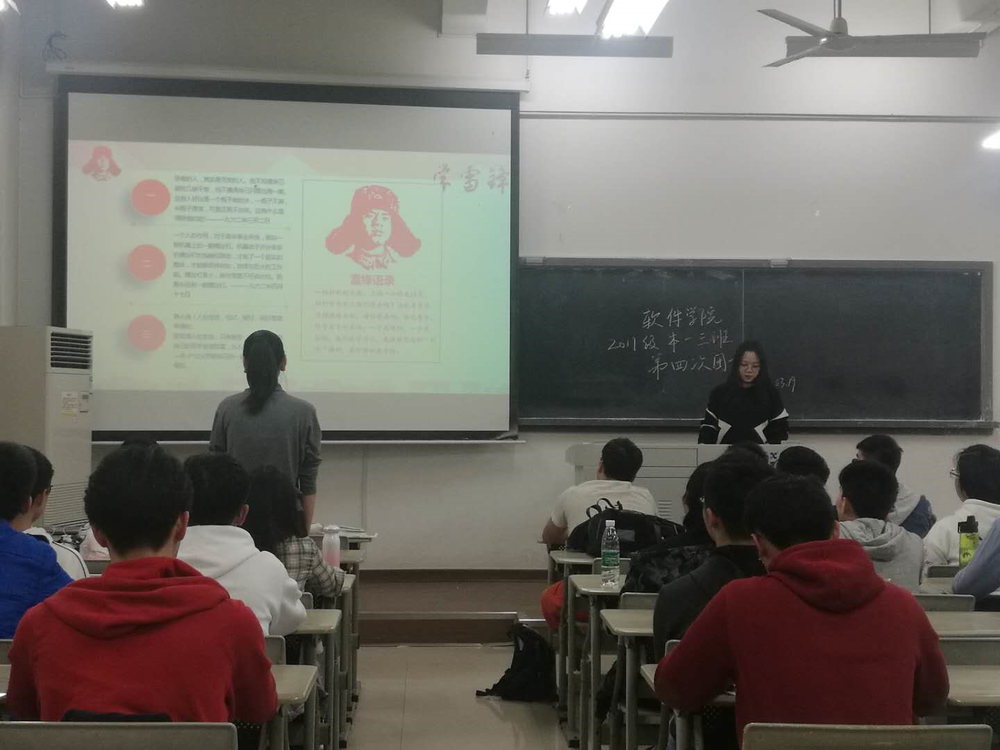 各团支部围绕主题,开展了内容丰富、形式多样的主题团课。团支书带领同学们在新时代下对雷锋精神重新思考,最终以雷锋的奉献精神为重点探讨雷锋精神的意义与价值。同学们还观看了有关雷锋精神的视频,进行了诗歌朗诵并深入学习了雷锋精神,在观摩与实践中提高了自己的责任意识和奉献意识。班级同学以自己的亲身经历为例,生动地表现出新时代大学生对雷锋精神的实践。