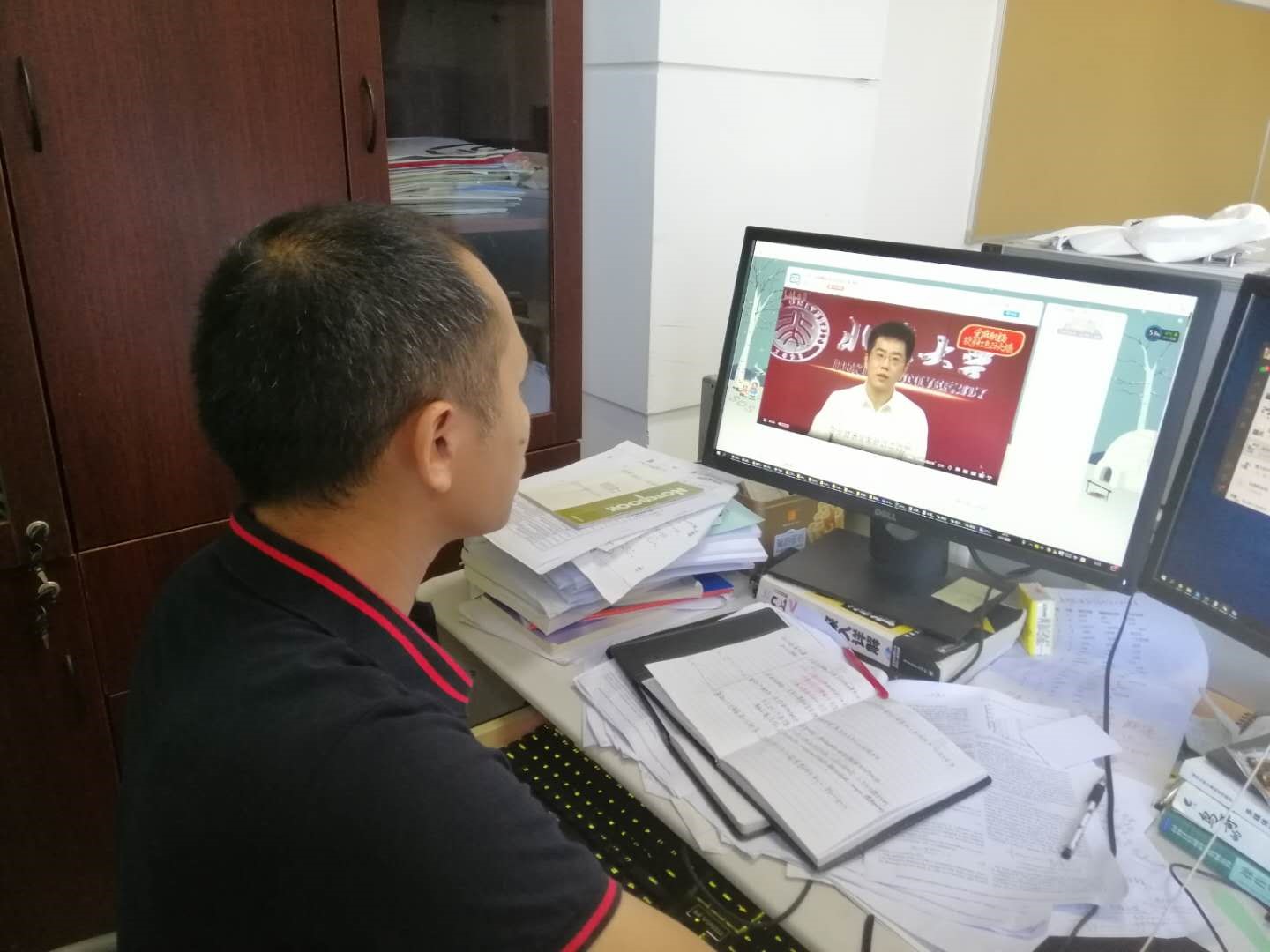 6月19日上午,学院党委组织师生收听收看“党旗飘扬,筑牢红色防火墙”——高校党组织战“疫”示范微党课。本期示范微党课由北京大学、清华大学、武汉大学、华中科技大学等4校党委书记和基层党支部书记以“1+1”形式联合开讲。学院党政领导、教工和学生党支部书记、科级干部在行政楼A201集中收看,其他党员师生在线收看。