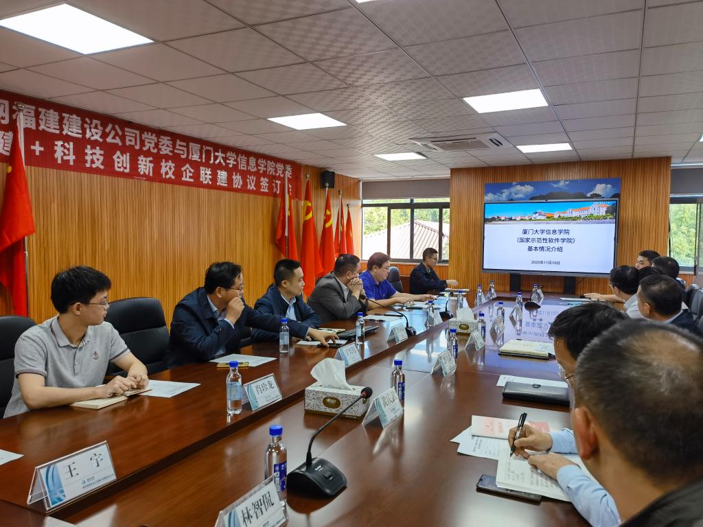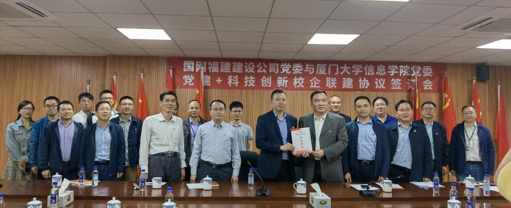 为进一步加强学院党建工作,推动党建引领,学科赋能发展,创新校企合作形式,经过学院党委精心谋划和交流沟通,11月10日,学院党委书记刘弢带队前往福州,与国网福建电力有限公司建设公司党委签订“党建+科技创新”联建协议并开展座谈交流。国网福建电力有限公司建设公司党委书记黄明祥、总经理林志和、公司中层干部、技术骨干,学院党委书记刘弢、副院长洪学敏、信息与通信工程系系主任丁兴号、部分青年教师等参加相关活动。