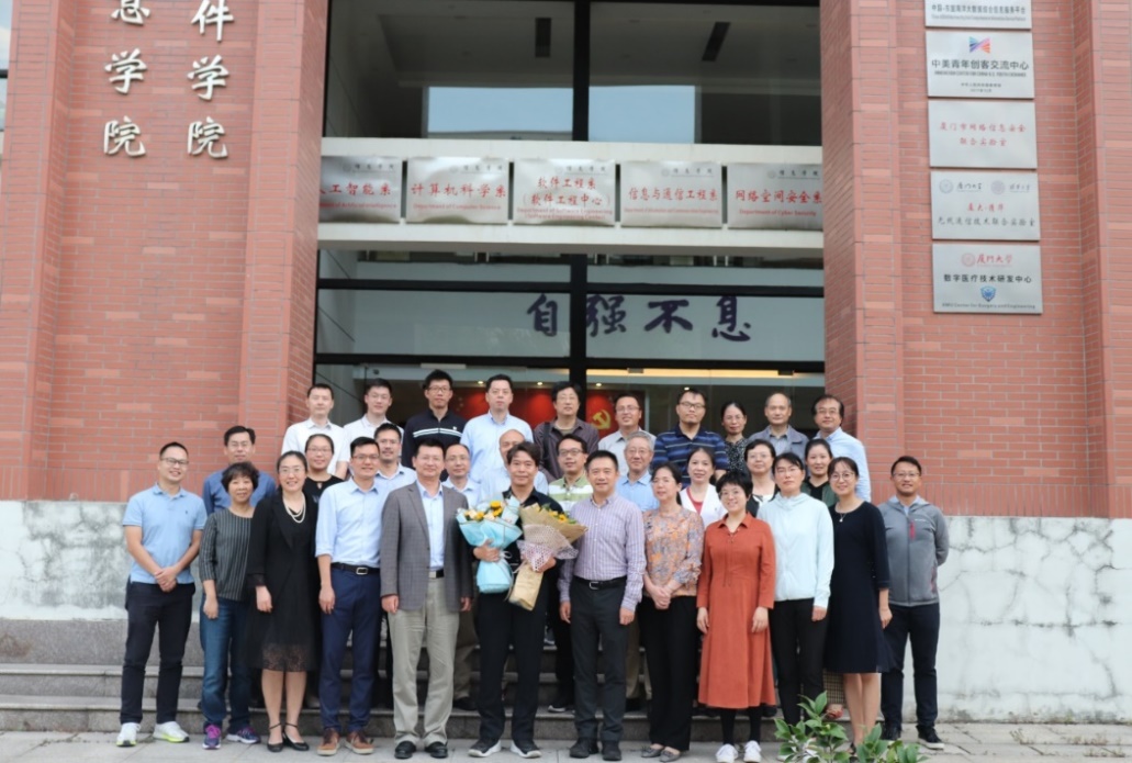 在总结发言环节,信息学院副院长王程教授,高度评价李翠华教授带领计算机系努力获批博士点,开创和睦共发展的学术氛围。信息学院副书记龙坚毅代表学院党委对李翠华老师荣休表示祝贺,并希望他发挥余热,做青年教师引路人和学科发展助力者。厦门大学劳资科科长柯自聪代表人事处感谢李老师为学校、学院和学科做得贡献,祝福他和家人生活幸福,工作开心。
