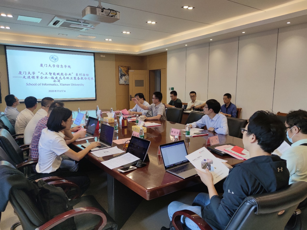 11月17日下午,信息学院“人工智能赋能企业”系列活动之走进领军企业福建龙马环卫装备股份有限公司在厦门大学海韵校区行政楼C610会议室成功举办。龙马环卫一行六人到访我院。我院副院长姚俊峰教授、软件工程系副主任吴清强教授、计算机科学系副主任刘向荣教授、软件工程系赖永炫教授、林俊聪教授及其他教师代表参与了此次座谈。