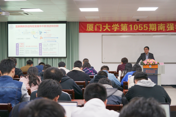 20201219日下午,中国工程院院士、清华大学计算机系主任、网络科学与网络空间研究院院长吴建平教授应邀来访我院,并在海韵园行政楼A201会议室展开了关于下一代互联网体系结构及创新方向的专题学术讲座。我院院长舒继武教授出席第1055期南强学术讲座现场并担任主持人