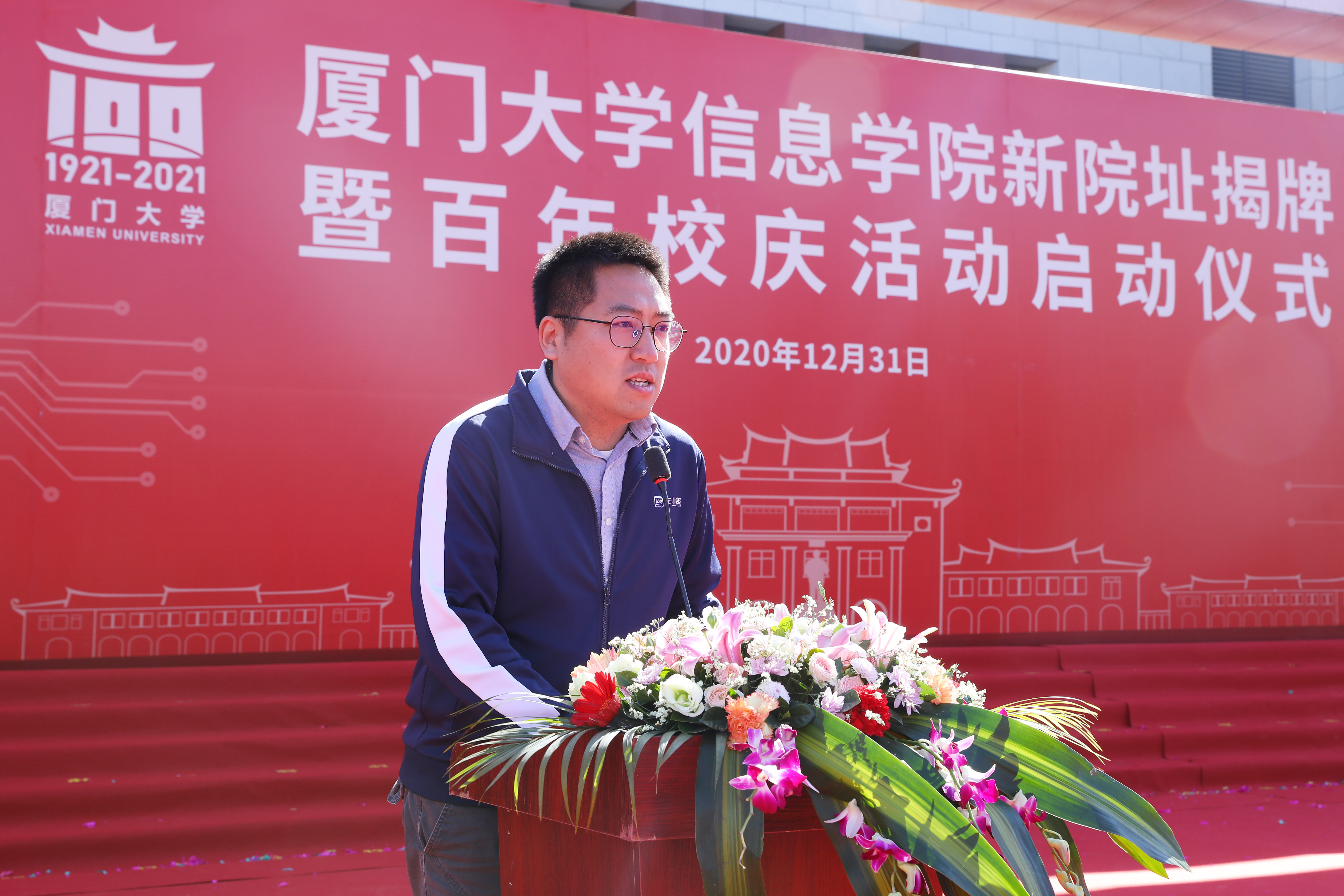 原厦门大学软件学院首届毕业生、作业帮联合创始人陈恭明先生作为校友代表发言,他表达了自己对母校的怀念之心、对信息学院的感恩之情以及对我院未来发展的期待与愿望。