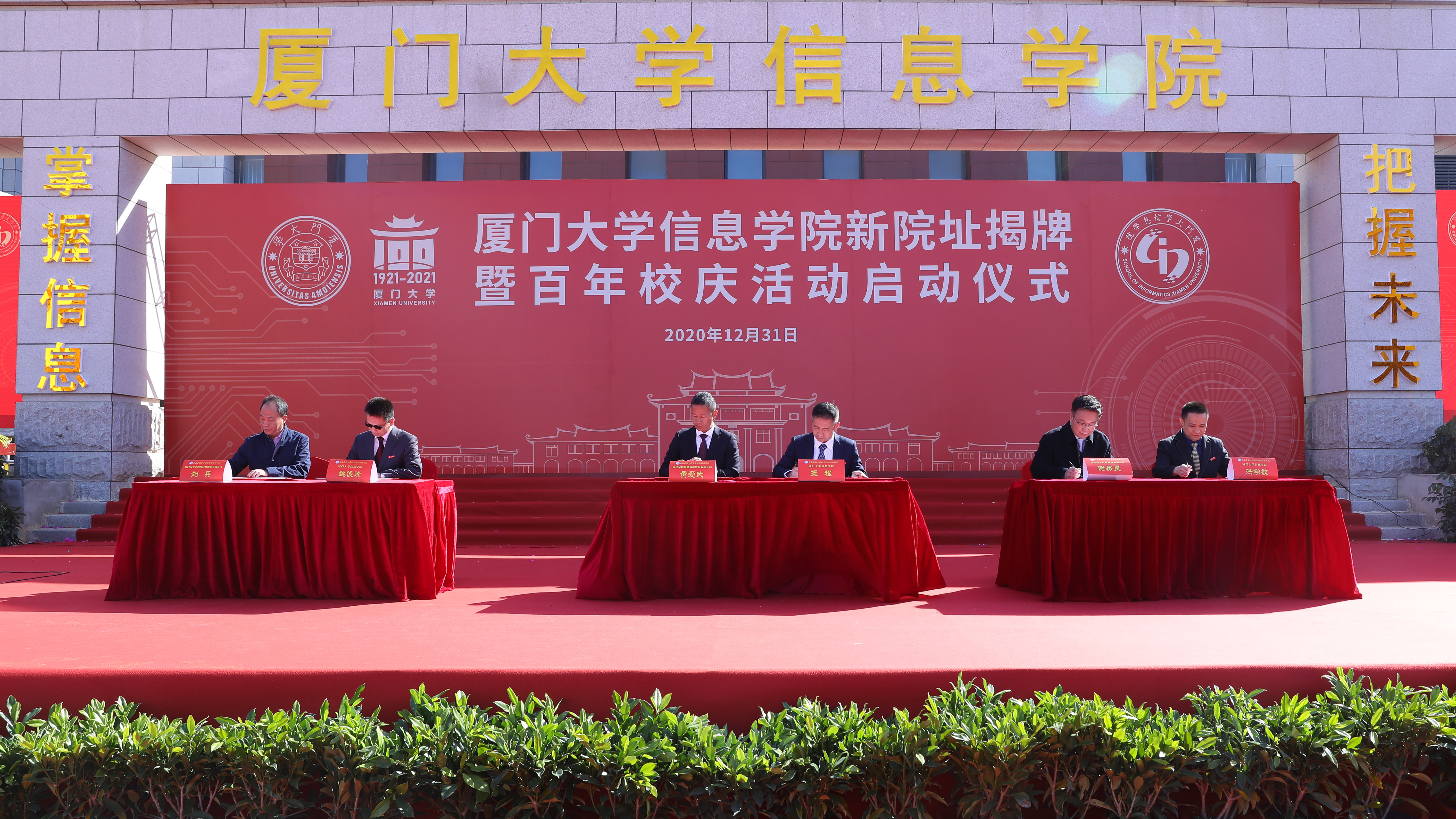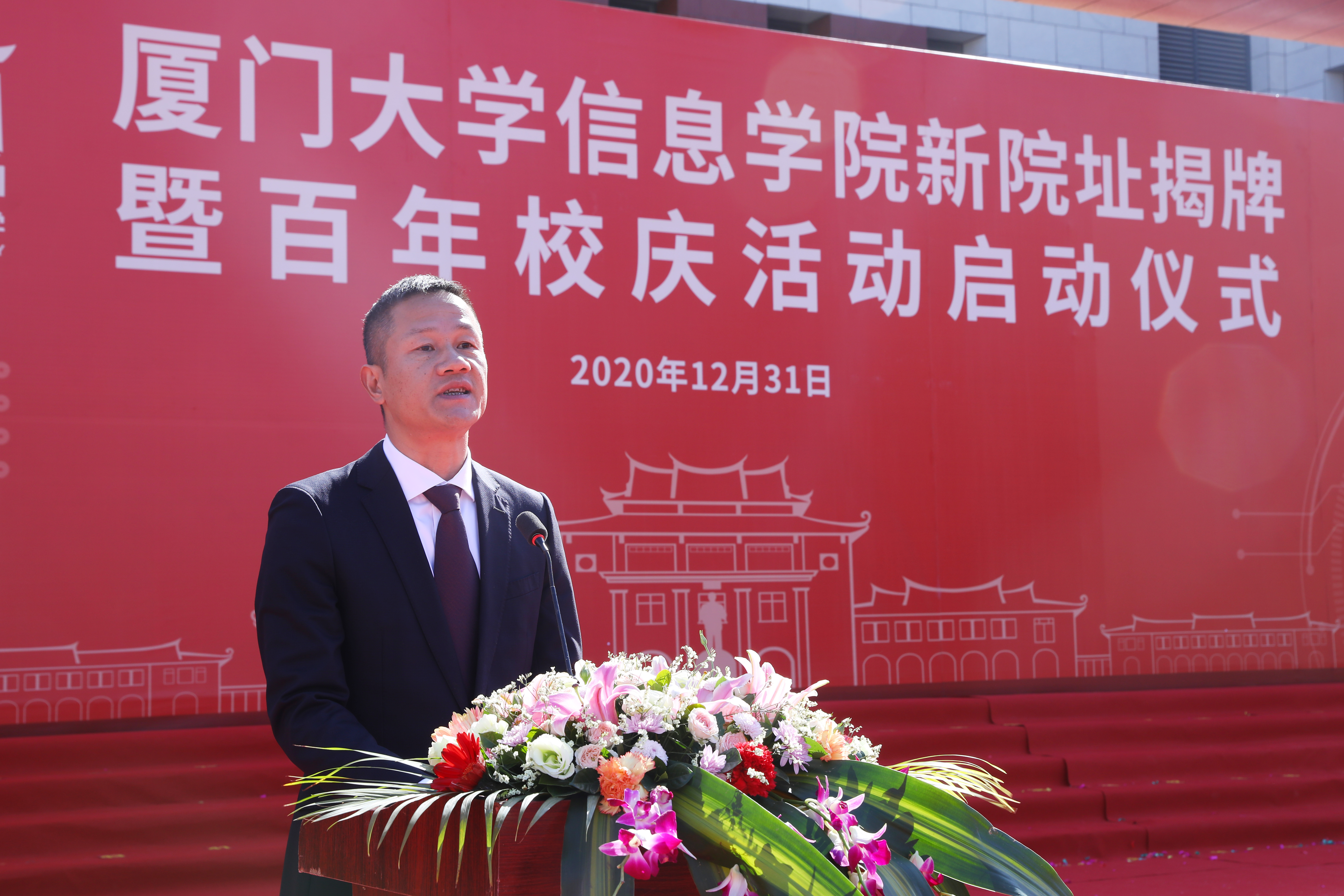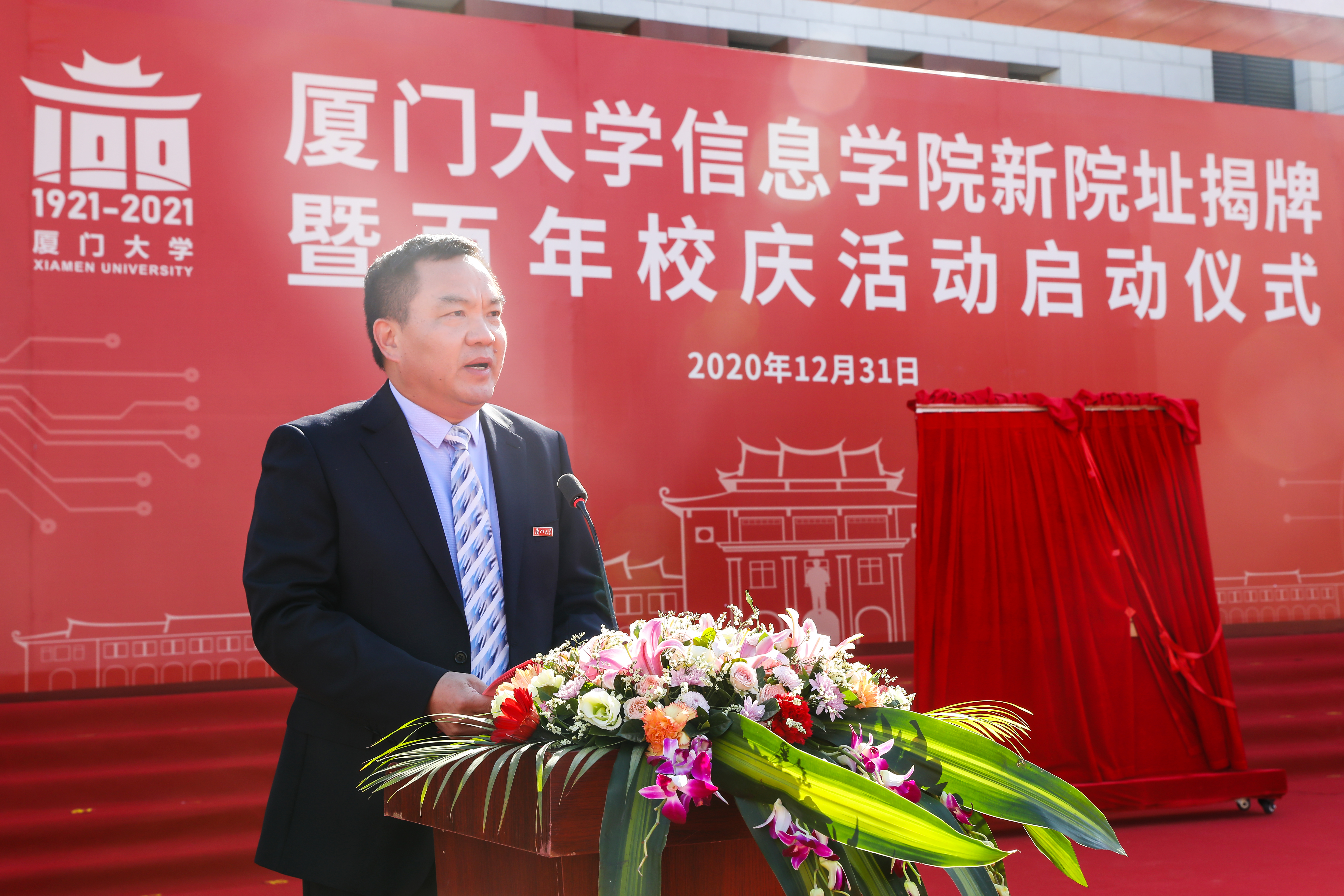 2020年12月31日上午10时,厦门大学信息学院新院址揭牌暨百年校庆活动启动仪式于翔安校区学院新院址隆重举行。原厦门大学常务副校长、厦门大学校友总会荣誉理事潘世墨教授,厦门大学校长助理、翔安校区管委会主任陈光,学校职能部门负责人、兄弟学院党政领导,来自全国各地的校友代表、企业界人士,信息学院老领导、党政班子成员、系所平台负责人、师生代表们共同参与本次仪式。信息学院党委书记刘弢同志主持仪式。