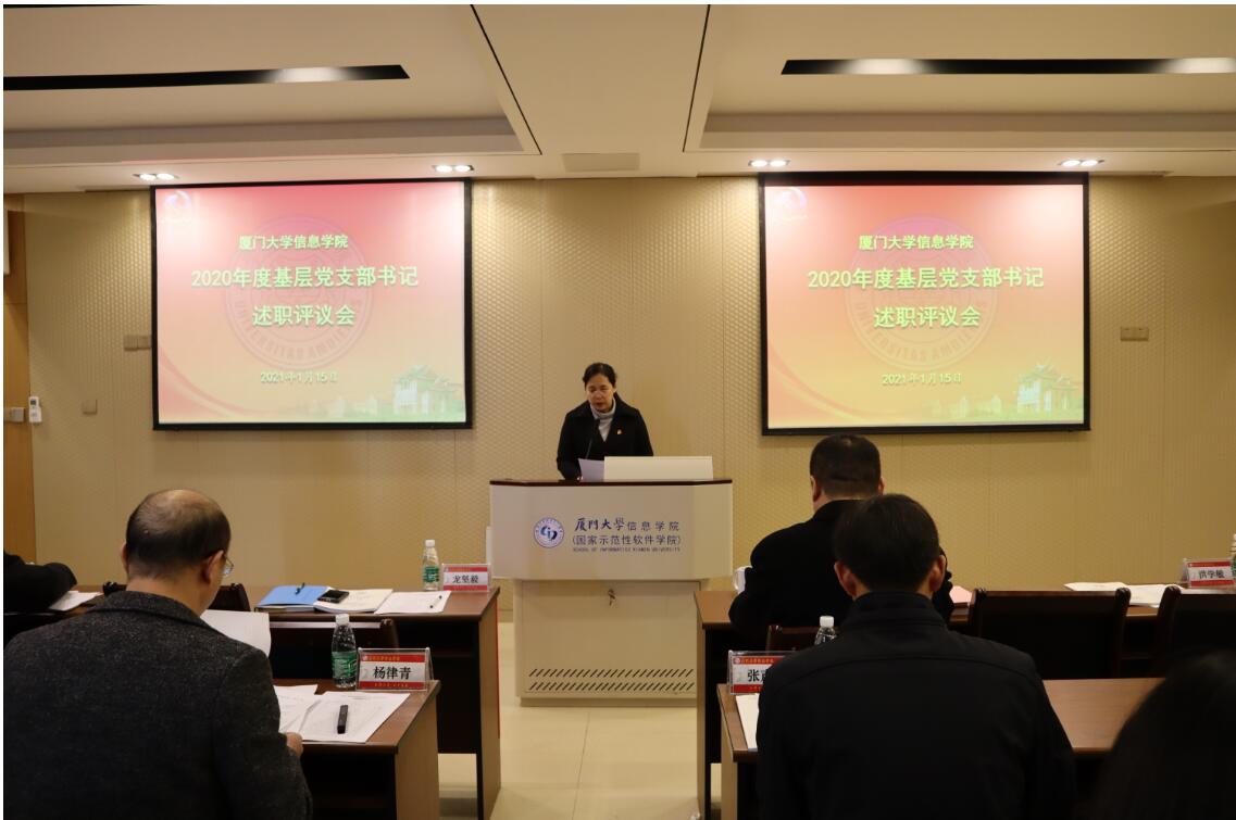 为深入学习贯彻习近平新时代中国特色社会主义思想,进一步推进全面从严治党向基层延伸,1月15日,学院党委在海韵园行政楼C505会议室召开2020年度基层党支部书记述职评议会。党员院领导、基层党支部书记、辅导员参加会议,学院党委副书记龙坚毅主持会议。