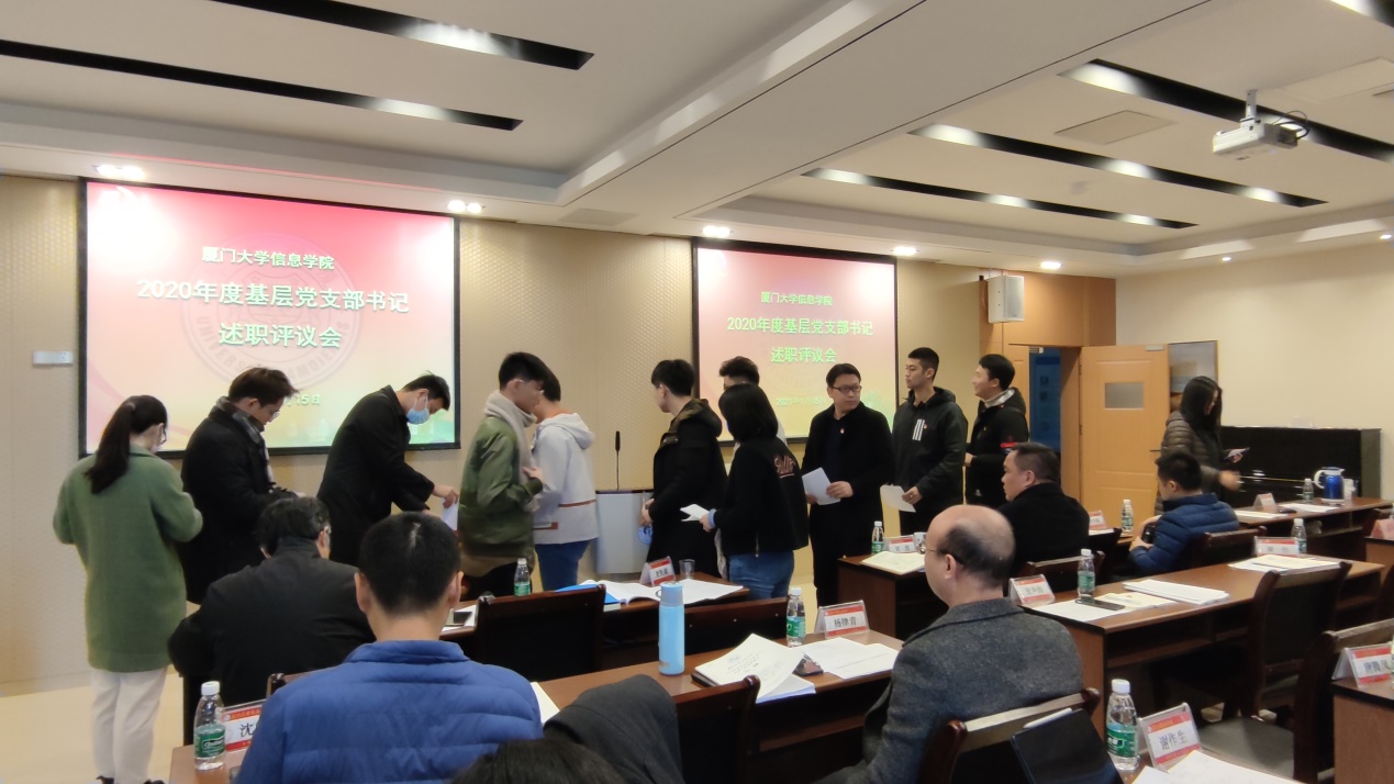 述职、点评结束后,与会人员根据述职报告和现场述职情况对2020年度支部书记抓党建工作情况进行测评。