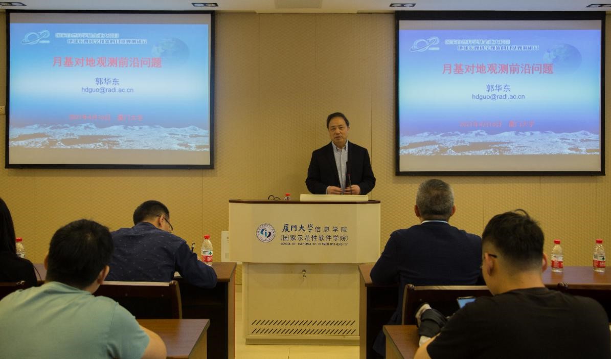 2021年4月16日上午,厦门大学第1094期南强学术讲座在海韵园行政楼C505举行。中国科学院郭华东院士应邀为我校师生作题为《月基对地观测科学问题》的学术报告。讲座由厦门大学信息学院王程教授主持。