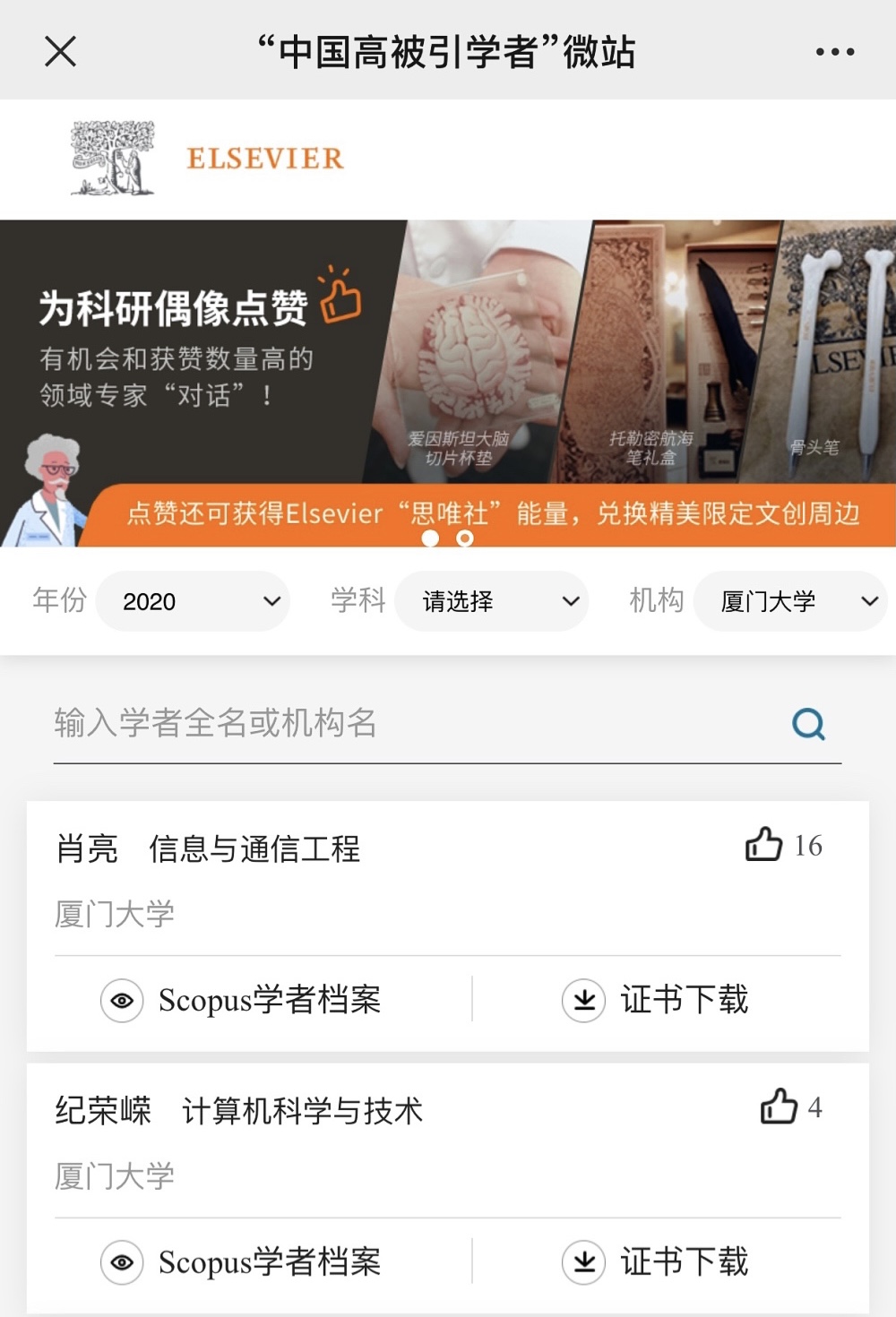 2021年4月22日,全球性信息分析公司爱思唯尔(Elsevier)正式发布了2020年中国高被引学者(Highly Cited Chinese Researchers)榜单。我院纪荣嵘、肖亮两位教授入选。