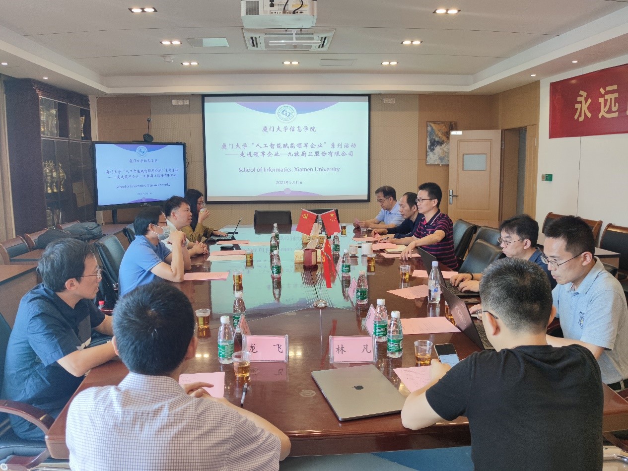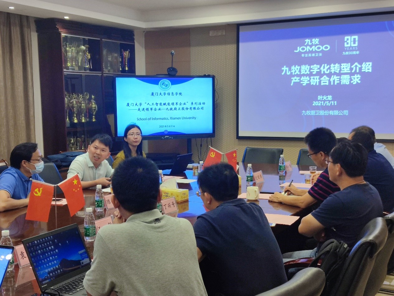 5月11日上午,信息学院“人工智能赋能企业”系列活动之走进领军企业九牧厨卫股份有限公司在厦门大学海韵校区行政楼C610会议室成功举办。九牧一行三人到访我院。我院副院长姚俊峰教授、各系班子成员及其他教师代表参与了此次座谈。