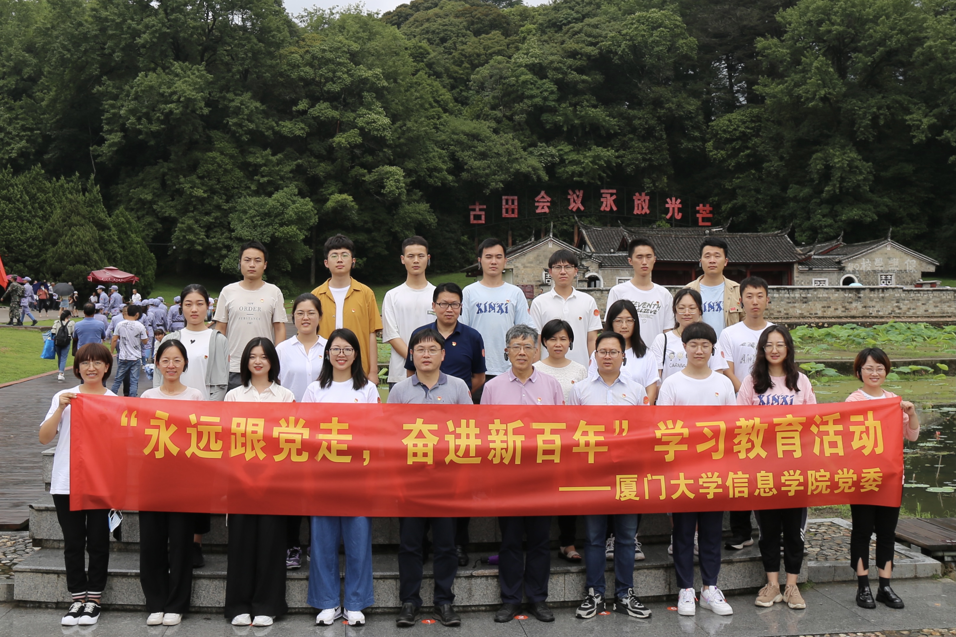 为迎接中国共产党百年华诞,深入学习贯彻习近平新时代中国特色社会主义思想,贯彻落实习近平总书记关于“四史”学习的重要讲话和指示精神,5月29日-30日,信息学院党委组织教工党员代表、学生党支部书记、部分学生党员骨干前往古田、长汀两地组织开展以“永远跟党走,奋进新百年”为主题的学习教育活动。