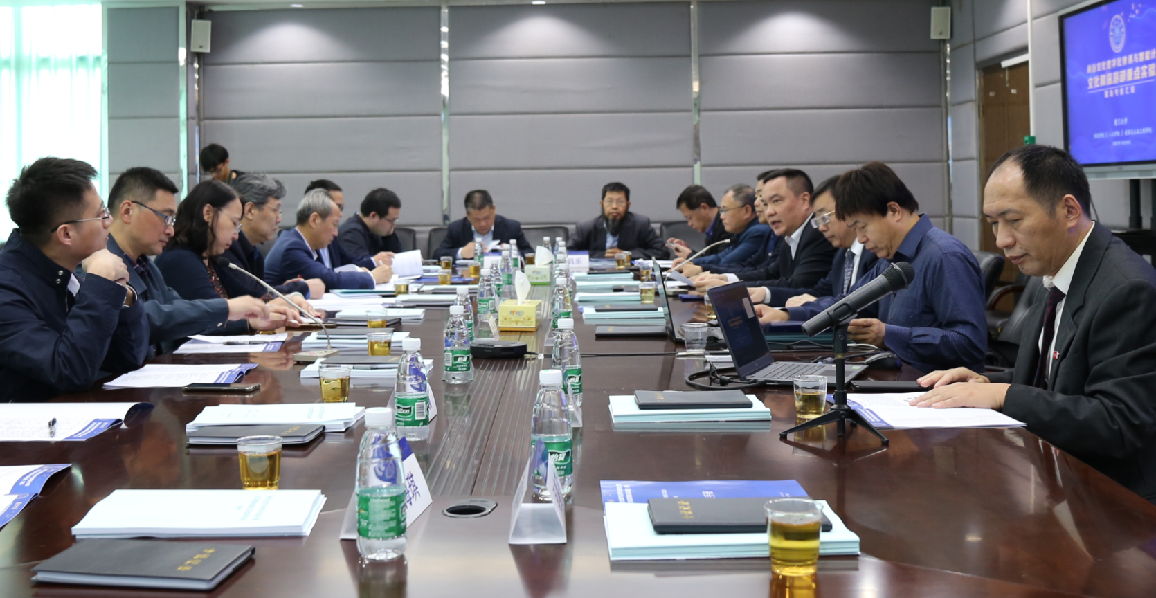 专家组现场考察了实验室闽台建筑数字化交互中心,并远程连线建筑数字化实验室。实地考察了实验室闽台语言类智能计算、闽台艺术类非遗数字化传承方向工作场地、设施设备及工作开展情况。评审会上,厦门大学科技处处长谭忠汇报依托单位对实验室建设支持情况。
