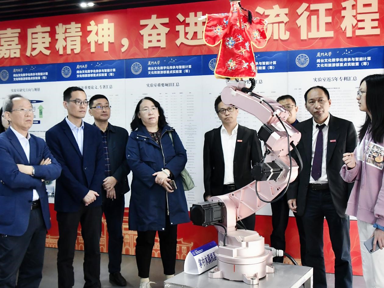 2021年 4月10日,文化和旅游部科技教育司副司长、一级巡视员李蔚带领专家组,实地考察了厦门大学“闽台文化数字化传承与智能计算实验室”,并召开现场评审会。专家组成员包括:文化和旅游部科技教育司科技处副处长、三级调研员乔伟,文化和旅游部科技教育司科技处一级主任科员王海琪,中国艺术科技研究所所长王丰,中国传媒大学教授蒋伟,浙江工业大学教授级高工倪洪杰。福建省文化和旅游厅副厅长、二级巡视员林湫、福建省文化和旅游厅科技教育处处长林赪、福建省文化和旅游厅科技教育处四级主任科员王弼、福建省旅游信息中心主任陈三元参加了实地考察和评审会。