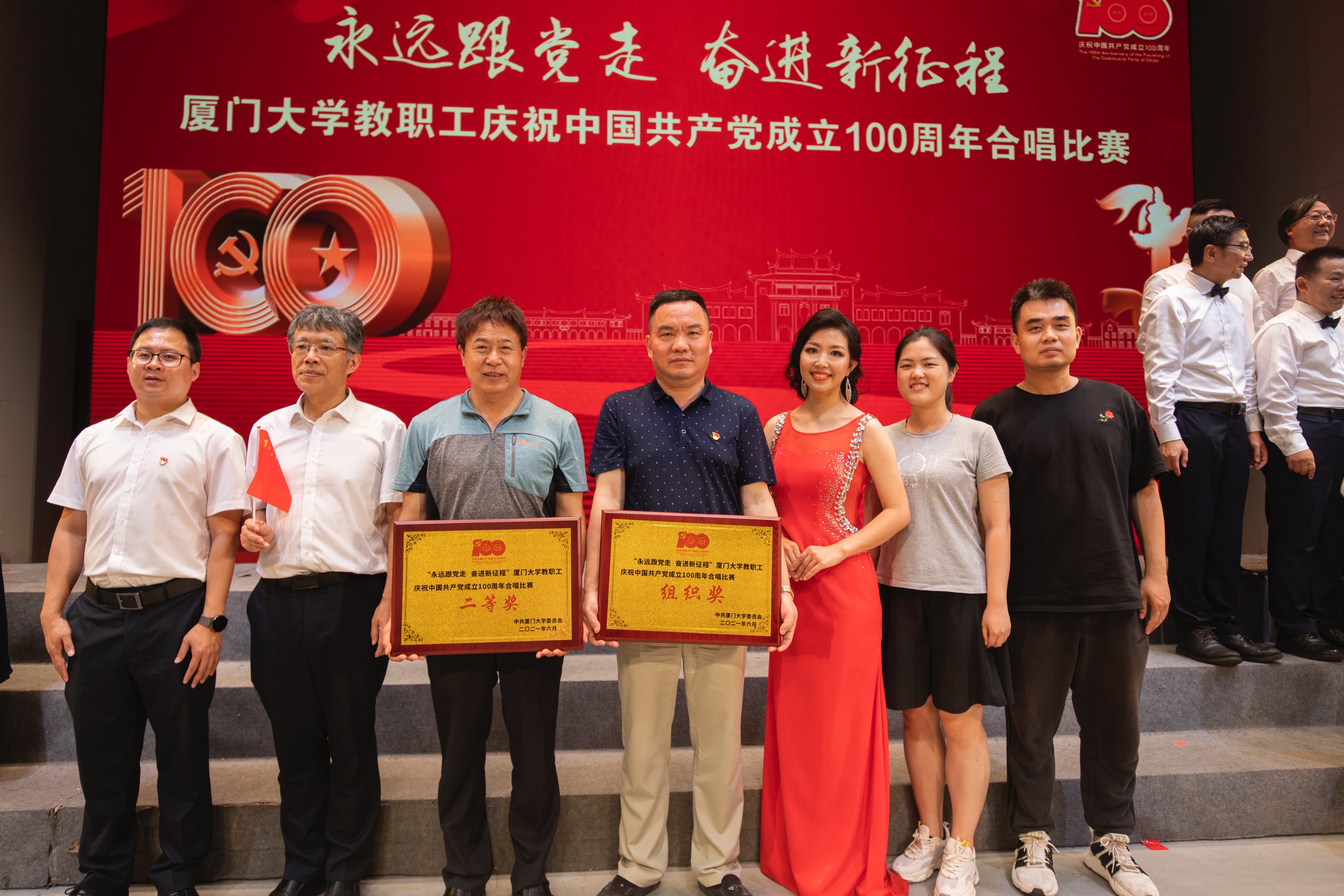 在刚刚过去的这个周末,厦门大学“永远跟党走 奋进新征程”教职工庆祝建党 100 周年合唱比赛在建南大礼堂隆重举行,包括嘉庚学院、机关党委在内的37个合唱团参赛。信息学院合唱团以96.56高分名列第五,荣获比赛二等奖;学院党委荣获组织奖(排名第三)。