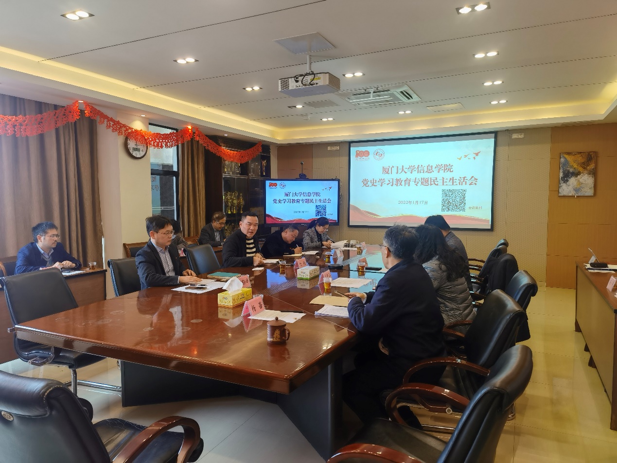 根据《关于认真开好厦门大学中层以上党员领导干部党史学习教育专题民主生活会的通知》文件精神和校党委的工作部署,1月17日下午,学院党委于海韵园行政楼C610会议室召开党史学习教育专题民主生活会。校党史学习教育第一指导组组长梁卫中到会指导。学院党政班子成员参加会议,工会主席、系所(中心)正副主任等列席会议。会议由学院党委书记刘弢主持。