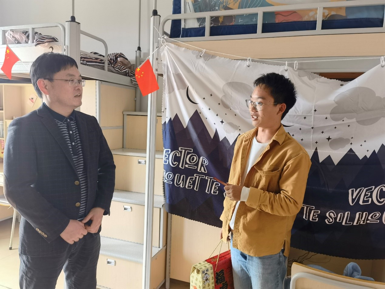 在翔安校区,领导老师深入学生宿舍,与因疫情未返乡学生、港澳台学生亲切交流,关心其假期留校的学习生活以及家乡近况,并送上新春礼包,表达学院的暖心关怀。