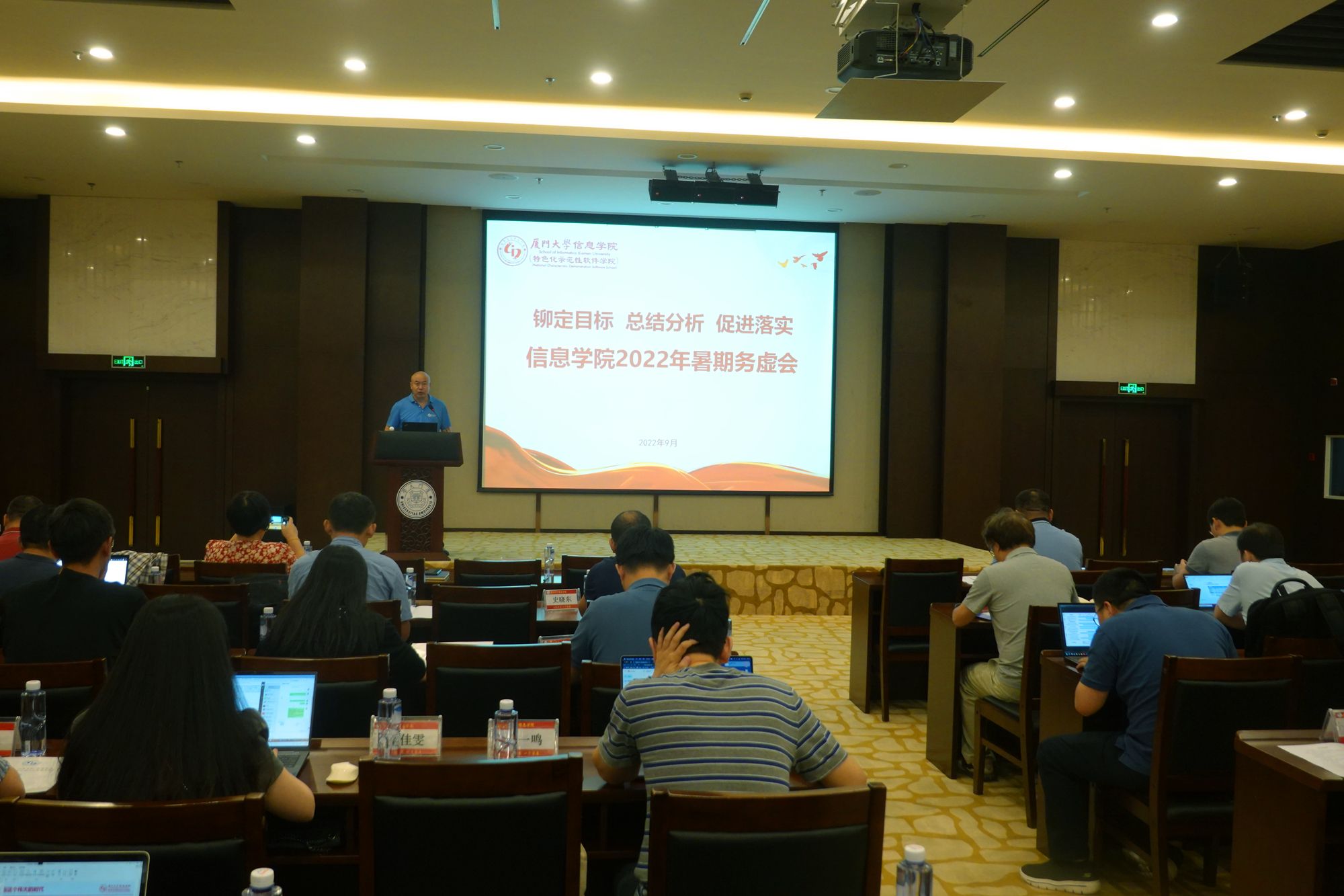 9月4日至6日,信息学院在翔安校区召开2022年暑期务虚会。会议的主题是:锚定一流学院、一流学科建设目标,总结综合改革阶段性成效和经验,分析工作中存在的问题和不足,提出改进思路和可操作性、可落地的举措,促进落实见效。