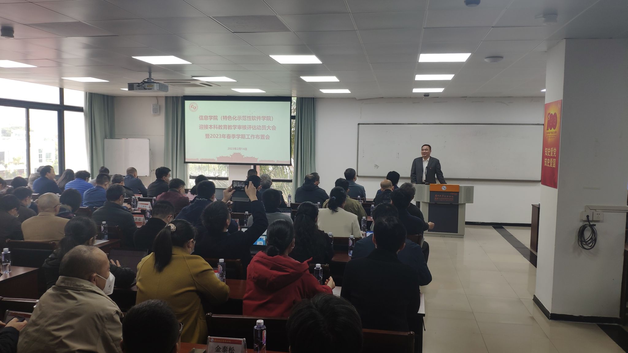 2月14日下午,信息学院在海韵行政楼A201召开本科教育教学审核评估工作动员会,就扎实做好2023年本科教育教学审核评估迎评工作进行动员部署。学院党委书记刘弢主持并作动员讲话。