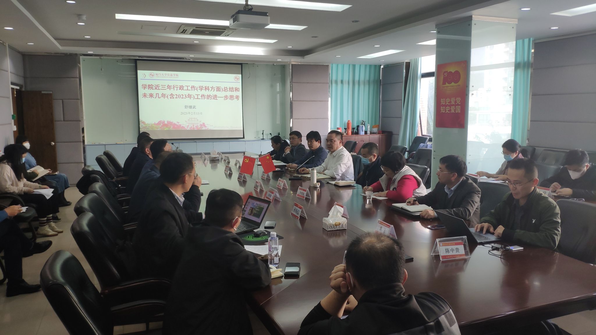 刘弢强调,2023年是全面贯彻落实党的二十大精神的开局之年,是实施“十四五”规划承上启下的关键之年。当前,学校对信息学科、信息学院的发展高度关注、高度重视、寄予厚望。学院正处在历史上最好的发展时期,也正面临着改革发展的关键时期,机遇与挑战并存。必须进一步认清形势、找准位置,凝聚共识、增强定力,对标“十四五”规划任务和学院2025年发展目标,对标学科评估要求,对标团队平台考核指标,对标教师成长晋升追求,做到心中有重点、眼中有大局,加强谋划、系统推进,着力补短板、强弱项、提质效,以实实在在的发展成效迎接学校第十二次党代会胜利召开。