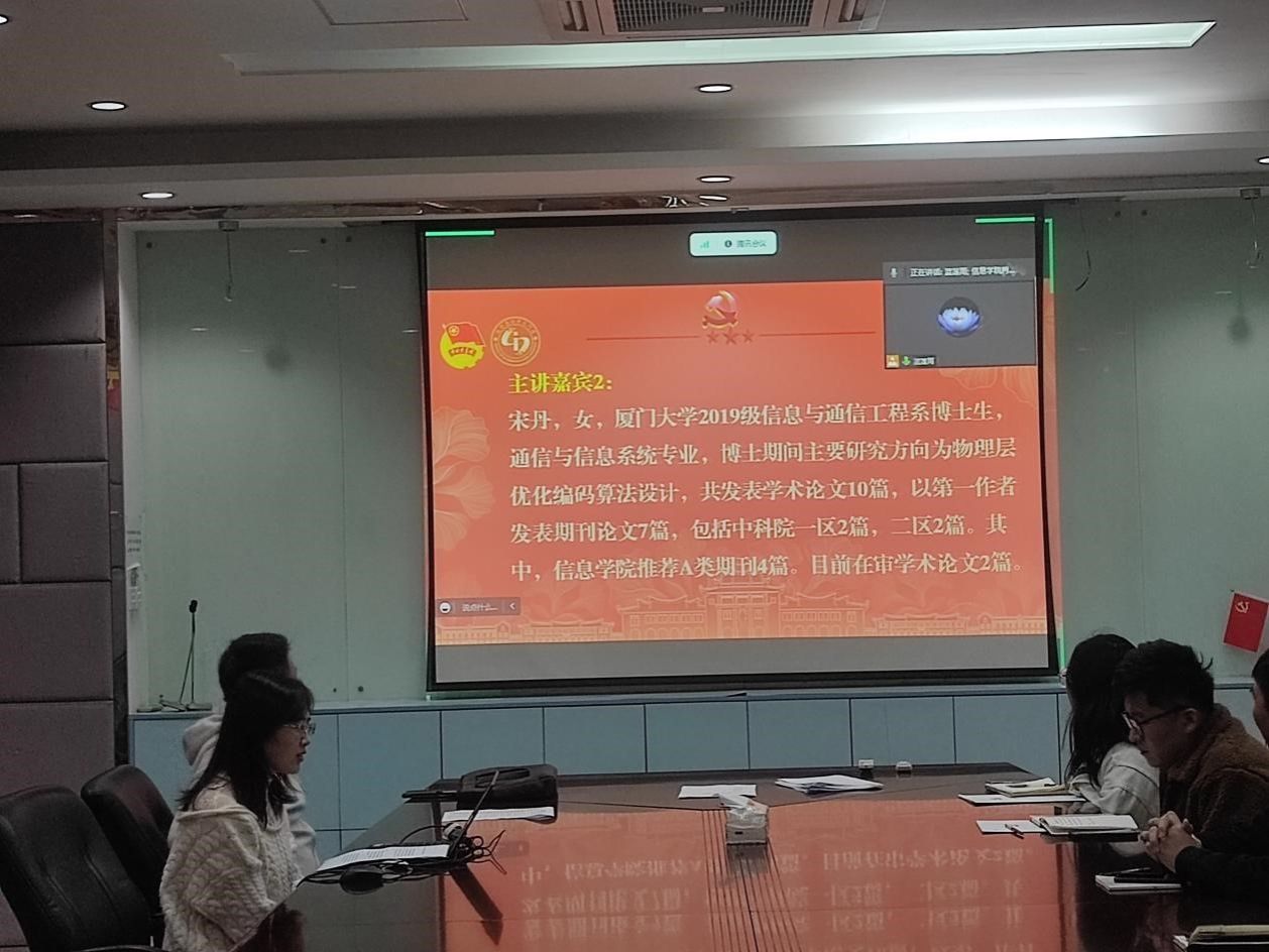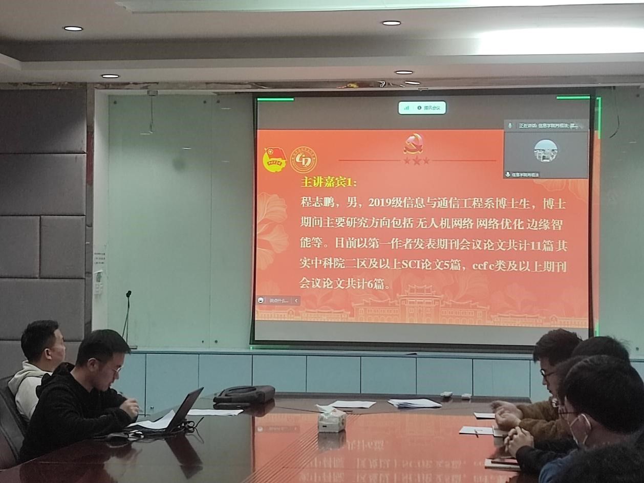 3月28日,信息学院“博士面对面:‘顶会顶刊’论文发表经验分享会”在海韵行政楼A306会议室举行,会议采取线上、线下相结合的方式进行。博士生程志鹏、宋丹、胡杰、罗根作为主讲嘉宾,通信系博士生党支部近30名党员线下参加,同时100多名硕博研究生线上参加。本次分享沙龙由信息与通信工程系博士生党支部主办,辅导员熊剑龙主持。