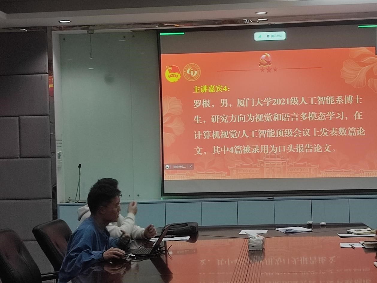 会议伊始,熊剑龙老师对四位博士生的科研表达了肯定,他指出,硕博生在科研上都有压力,特别是发论文方面,为了解决大家论文发表的痛点、难点和堵点,学院的四位论文大咖将分享他们发表“顶会顶刊”的成功经验,希望同学们以他们为榜样,脚踏实地,努力前行,并鼓励同学们畅所欲言,积极探讨。