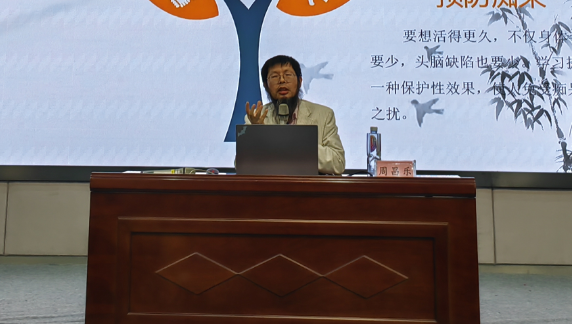 周教授通过引用解释文学家高尔基和理学家朱舜水的名言,以及脑科学关于前额皮质的研究,从不同的角度提出了读书具有保持思想活性、优化大脑、疗愈内心的功能。他提倡,所有人都要以终身学习为要,学然后知不足,去挑战有难度的书籍,培养认知能力,强化认知储备。他从书籍的作用作为切入点,介绍了三类“要读的书”,第一,要读圣贤之书,提高人生判断力;第二,要读科普之书,理解当代科学;第三,要读审美之书,培养艺术鉴赏力,并分别推荐了《周易正义》《寻找薛定谔的猫》《美的历程》等9本适合大学生阅读的好书,形成安身立命之书九宫格。他指出,读书要专心致志、循序渐进、持之以恒,才能把经典之书读到位;读书要有质疑精神,带着批判思维而不能盲信,也要注意劳逸结合,阅读贵精不贵多,有效顺序应该是先精深然后博大。他强调,要积极践行“自强不息 止于至善”的校训,要文理东西合璧,取其精华去其糟粕,掌握有效的读书方法,博览群书、博而不杂,融会贯通、内化通达、隐于无形。在互动环节,针对同学提出的“如何应对大学期间的焦虑迷茫”问题,周教授建议同学们认真阅读《大学》,做到事过不留于心,把每天过得充实。
