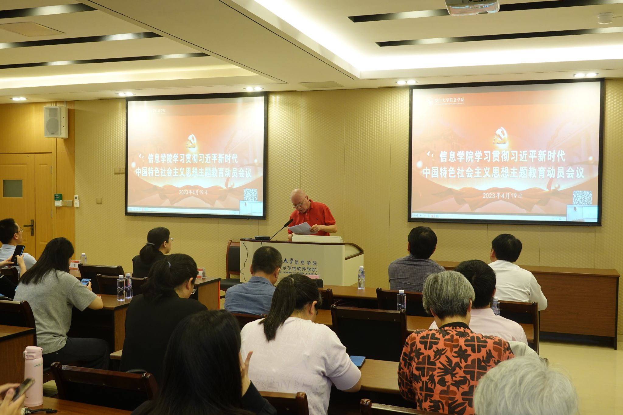 4月19日下午,信息学院召开学习贯彻习近平新时代中国特色社会主义思想主题教育动员会。学院党委书记刘弢主持会议并作动员讲话。学校第七巡回指导组组长邵鹏飞到会指导并讲话。