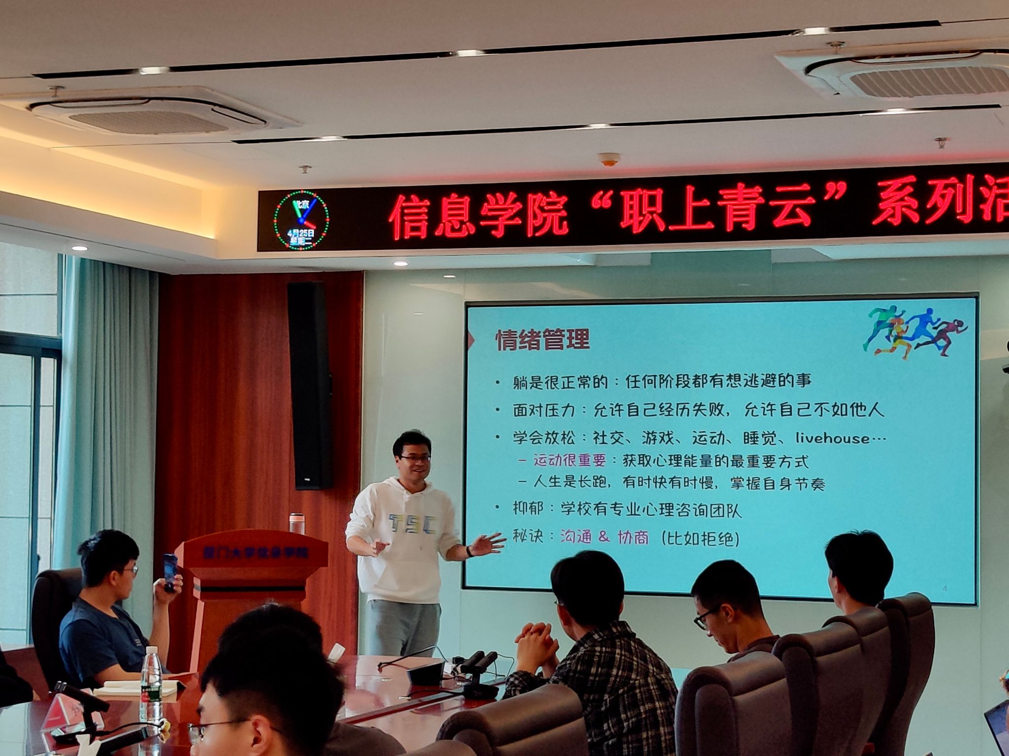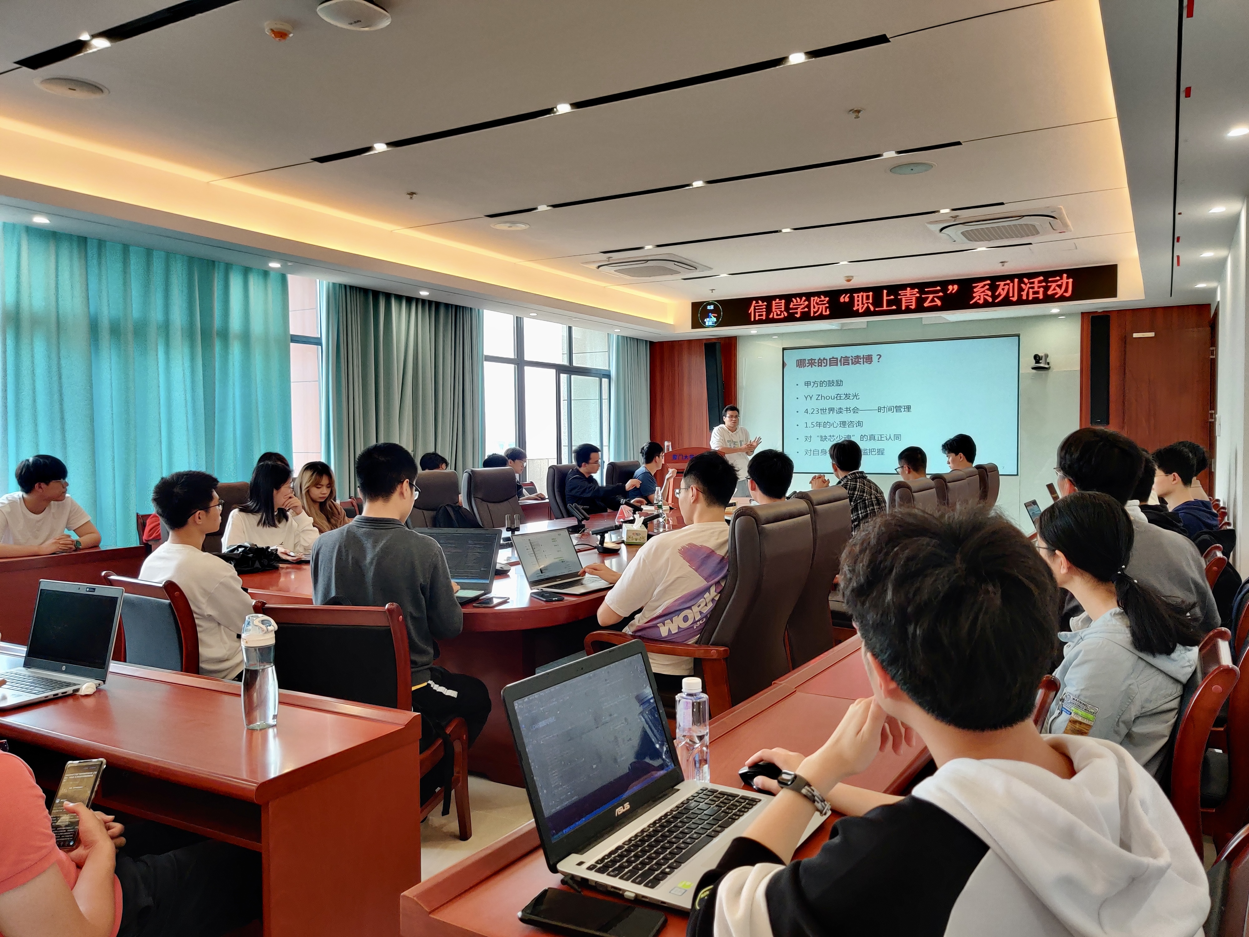 为加强学生职业生涯规划指导,4月25日下午,信息学院“职上青云”系列活动之“学生阶段如何玩出自我”分享会在正信楼1号楼401顺利举行。本期分享会特邀嘉宾为上海交通大学电子与信息工程李明煜博士,活动由信息学院就业指导中心主办,学院团委副书记刘长青主持。